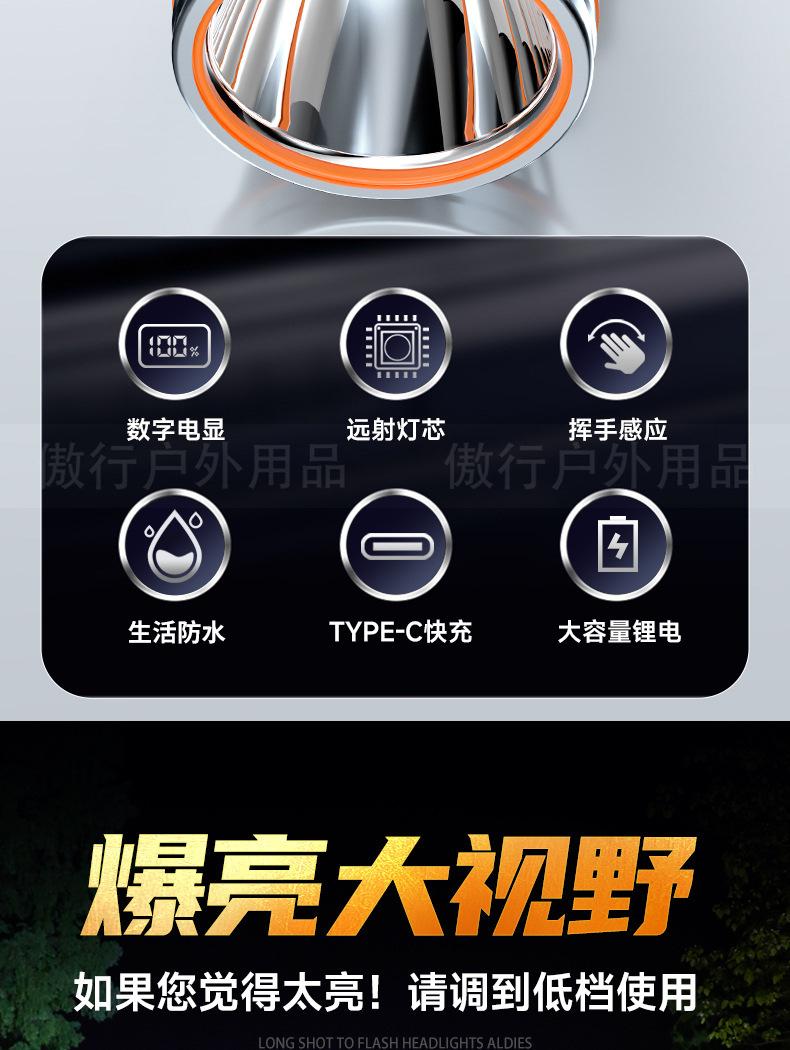 Nueva linterna frontal potente para exteriores, de larga duración, multifunción, con carga por inducción para acampar, para trabajar de noche, para pesca, lámpara de minero