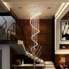 Lámpara de araña de escalera de estilo europeo, lámpara de araña de cristal, lámpara de escalera, lámpara de araña larga, lámpara de villa tipo loft, lámpara de araña de sala de estar de edificio de prueba