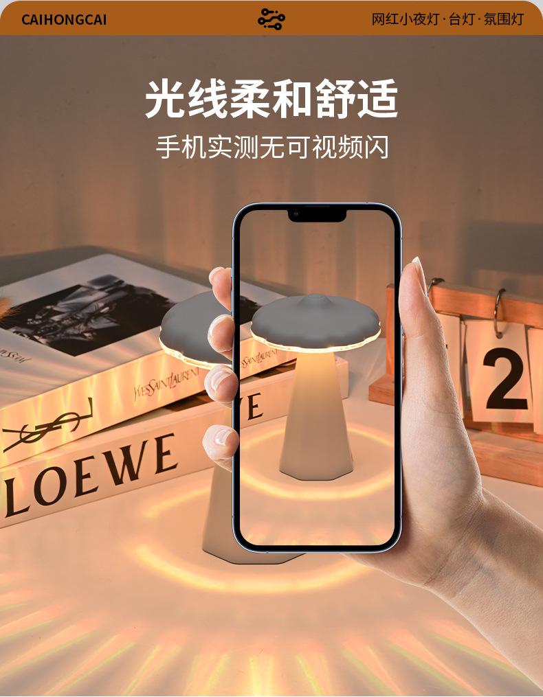 Lámpara de hongo recargable transfronteriza, nueva, de fábrica, luz simple, lámpara de mesa de ambiente lujoso, control remoto, cambio de color, luz nocturna romántica y creativa.