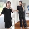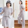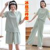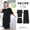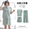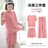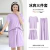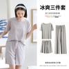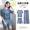 Pijama fino de verano de seda de hielo de tres piezas, camiseta de manga corta, top de mujer, pantalones cortos holgados, ropa exterior, traje