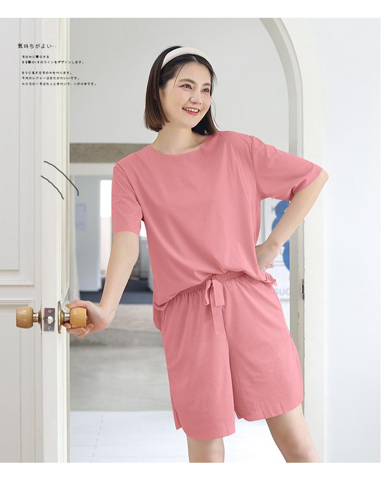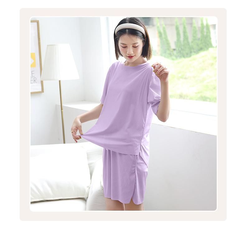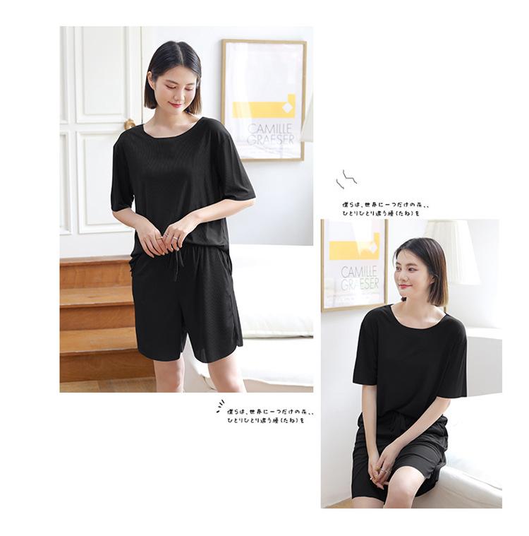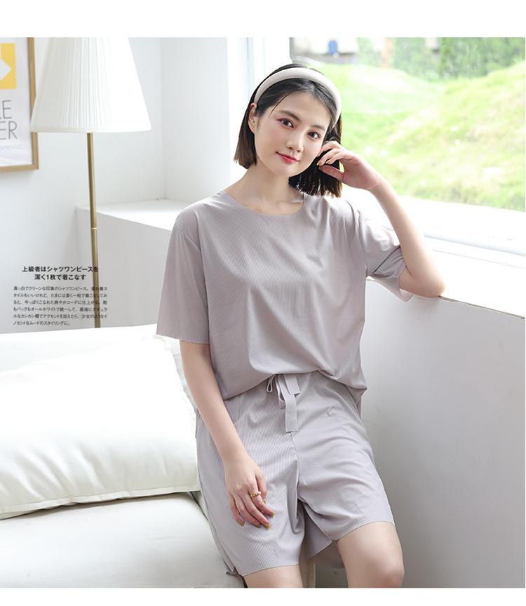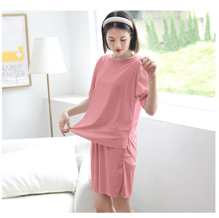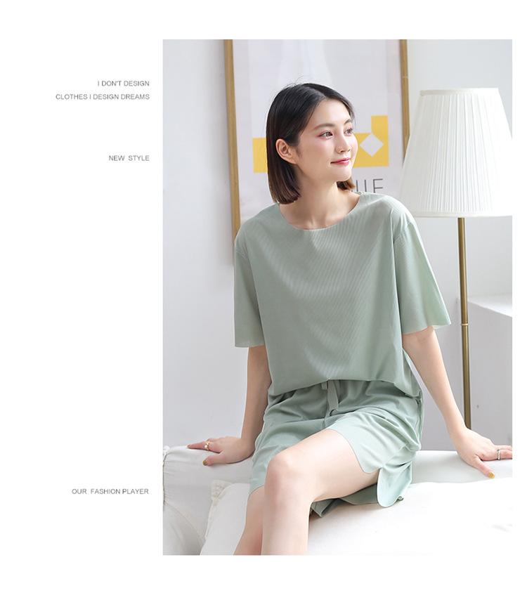 Compra Pijama fino de verano de seda de hielo de tres piezas, camiseta de manga corta, top de mujer, pantalones cortos holgados, ropa exterior, traje al por mayor en Joom.pro