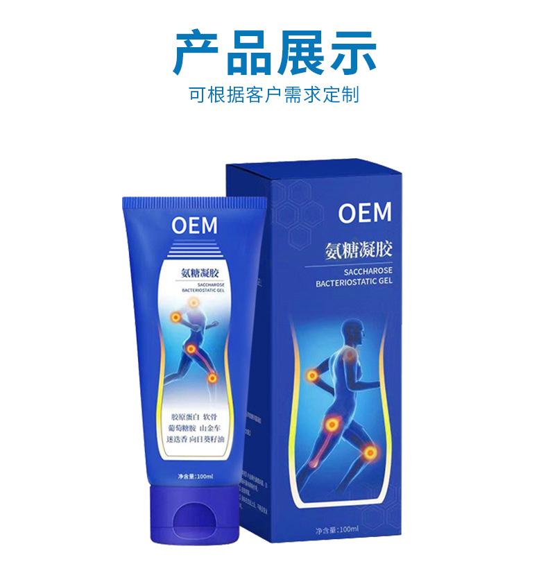 Gel de glucosamina personalizado, tubo azul pequeño para la articulación de la rodilla, uso externo, gel de glucosamina condroitina, compresa fría OEM