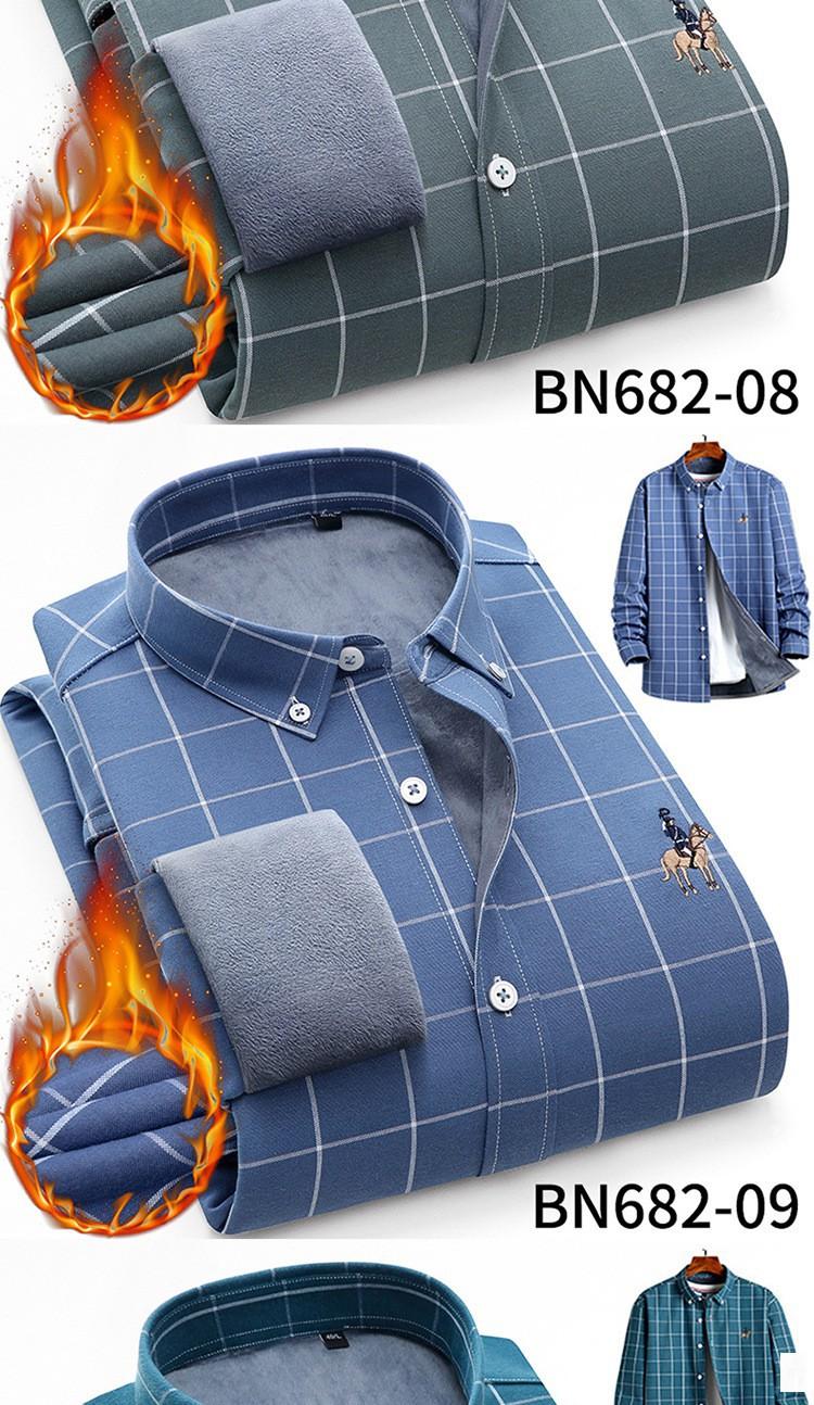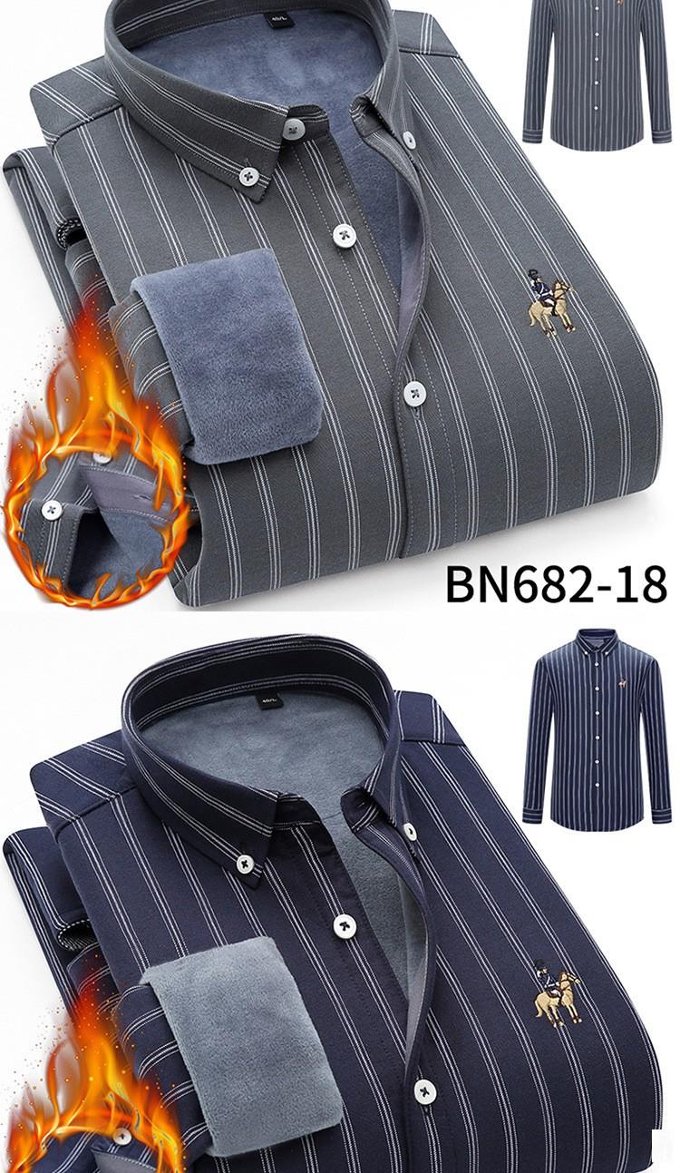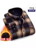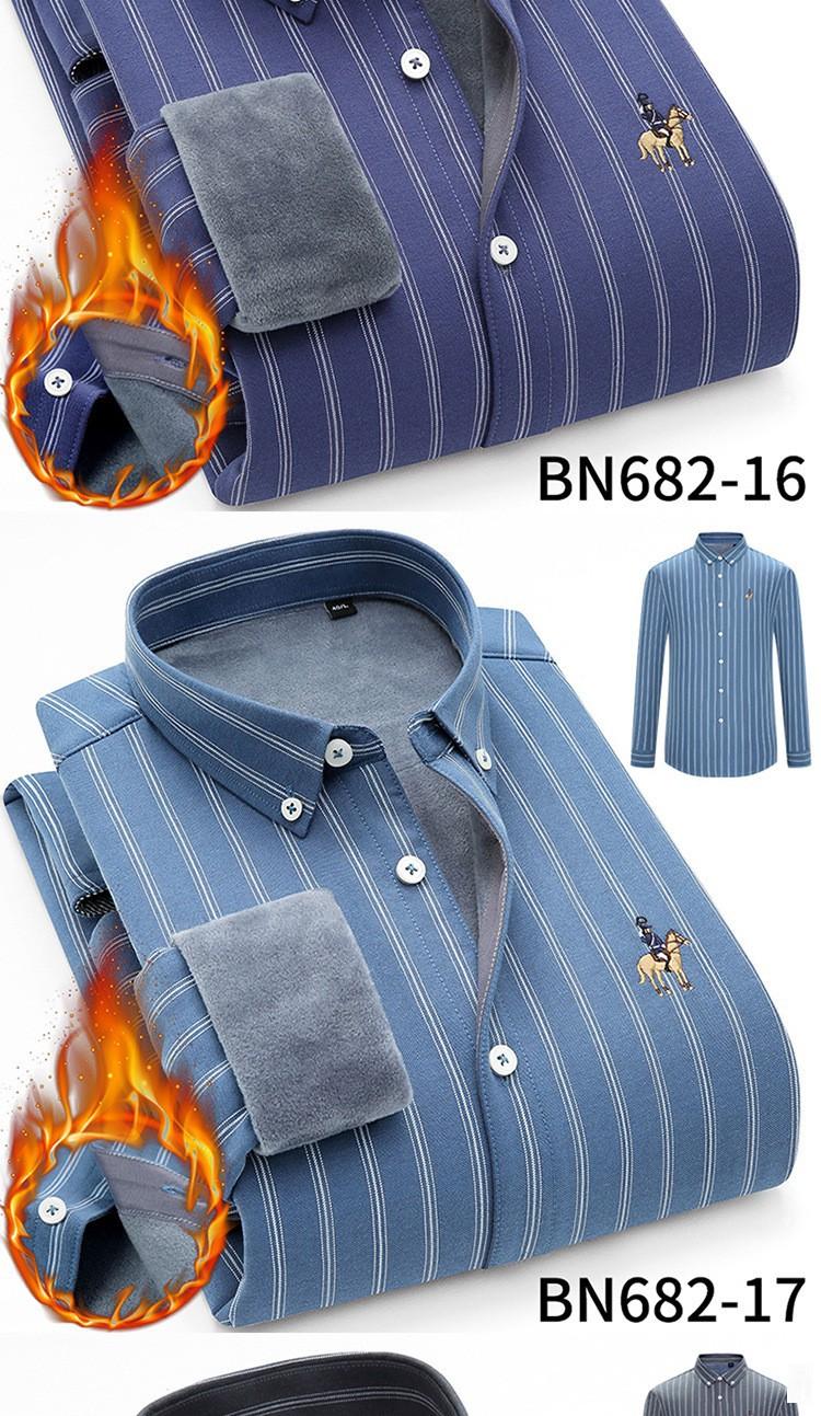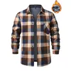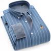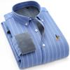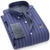 Camisa térmica gruesa de invierno para hombre, con forro polar, de algodón Oxford a cuadros, de una pieza, de terciopelo a rayas