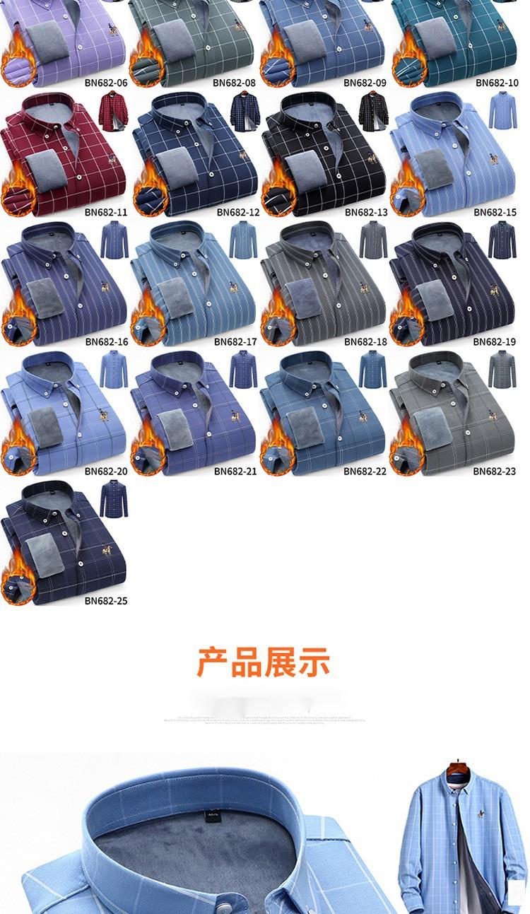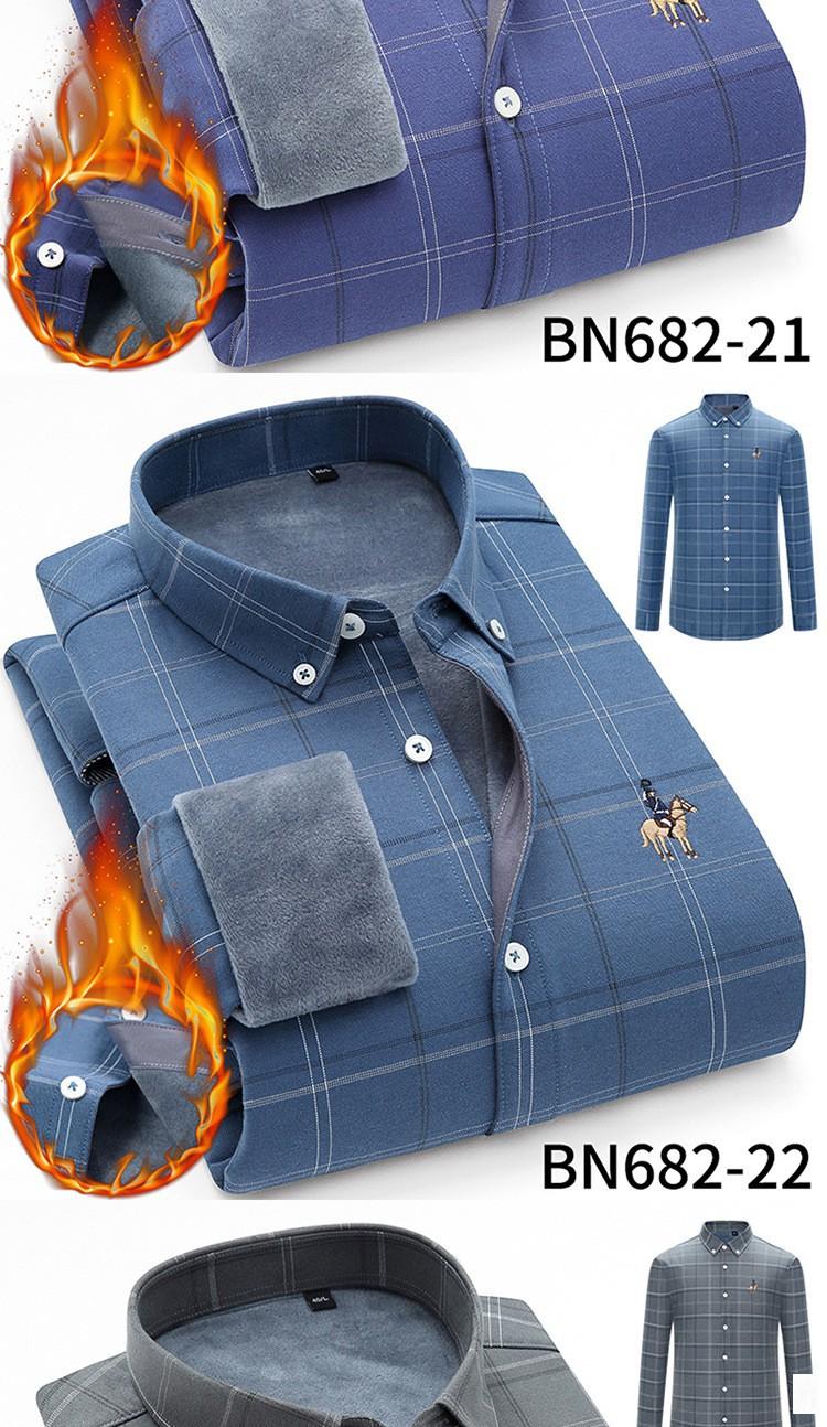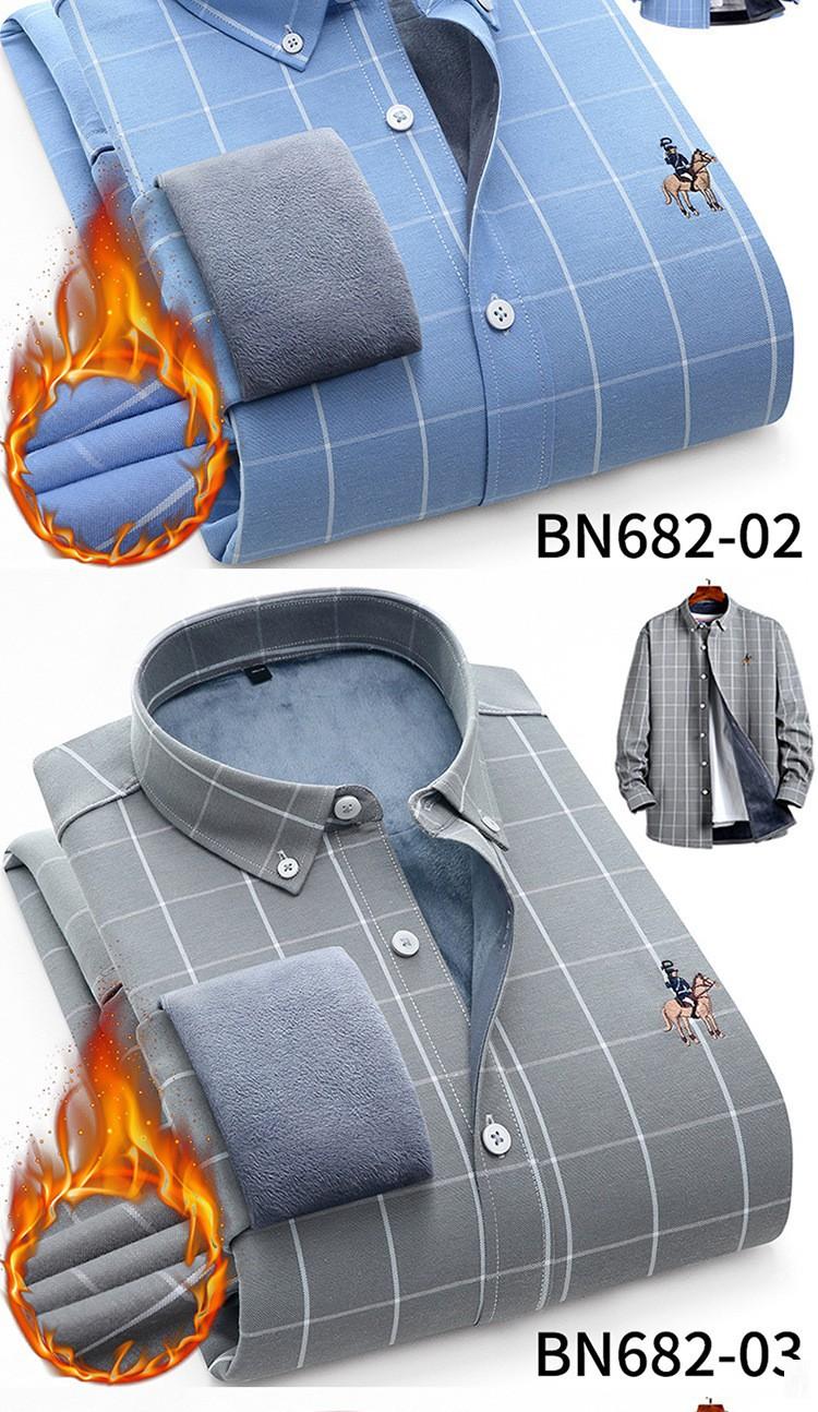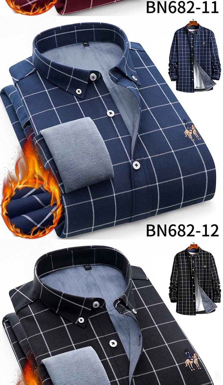Camisa térmica gruesa de invierno para hombre, con forro polar, de algodón Oxford a cuadros, de una pieza, de terciopelo a rayas