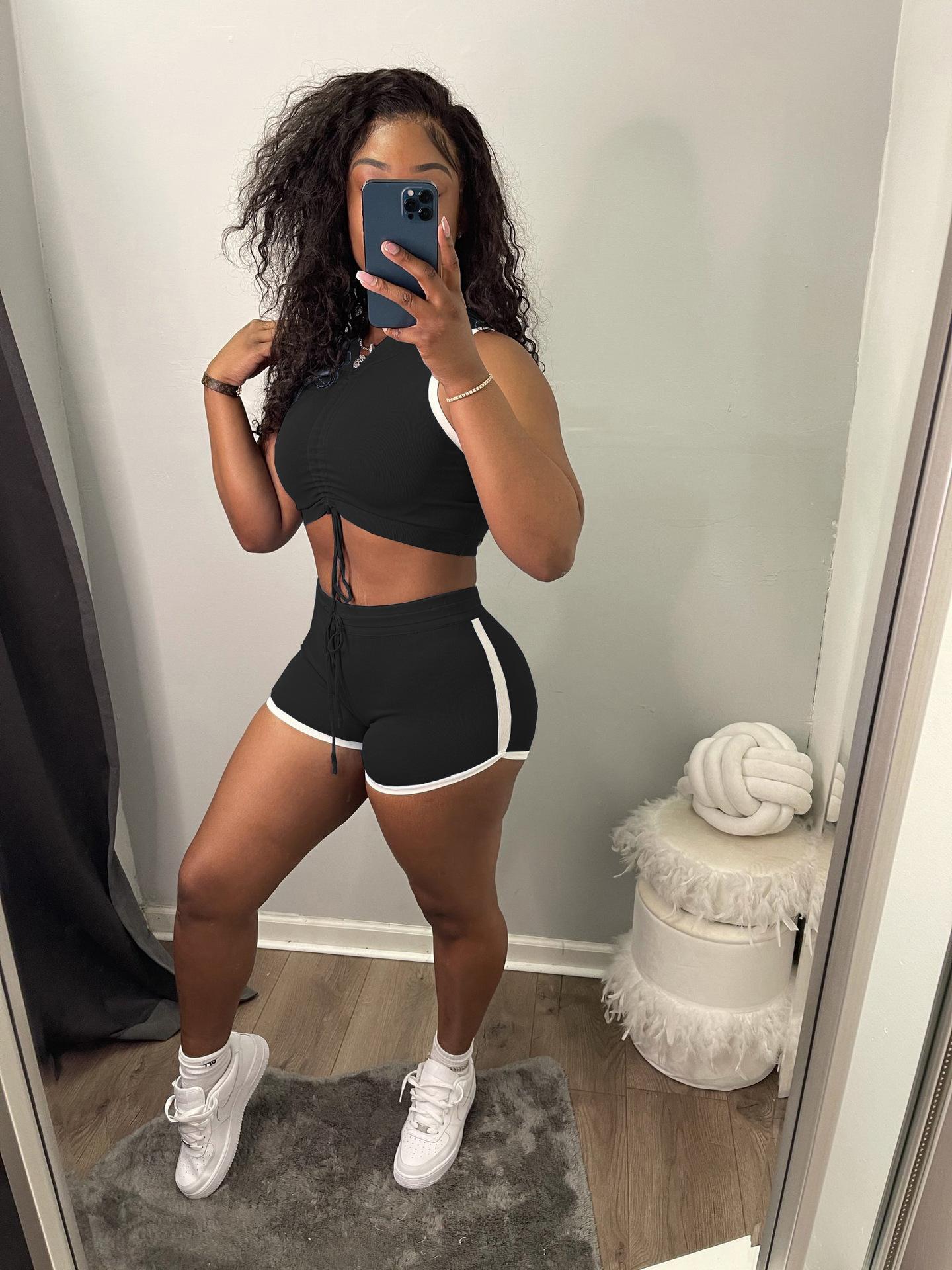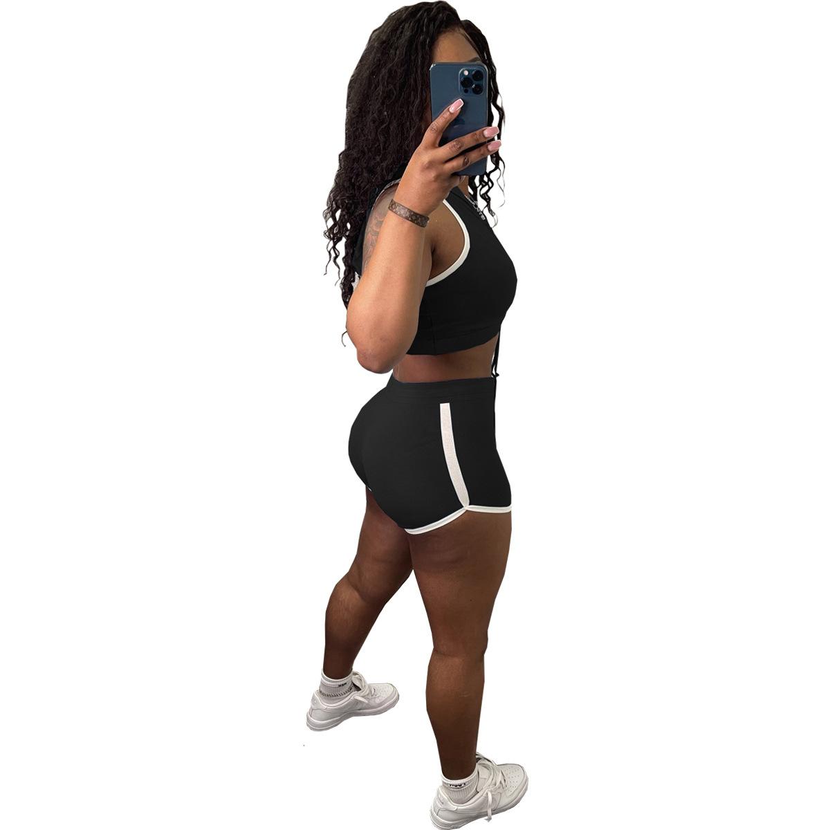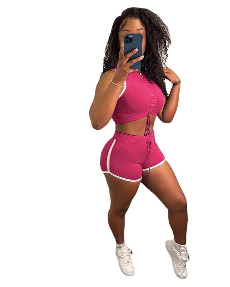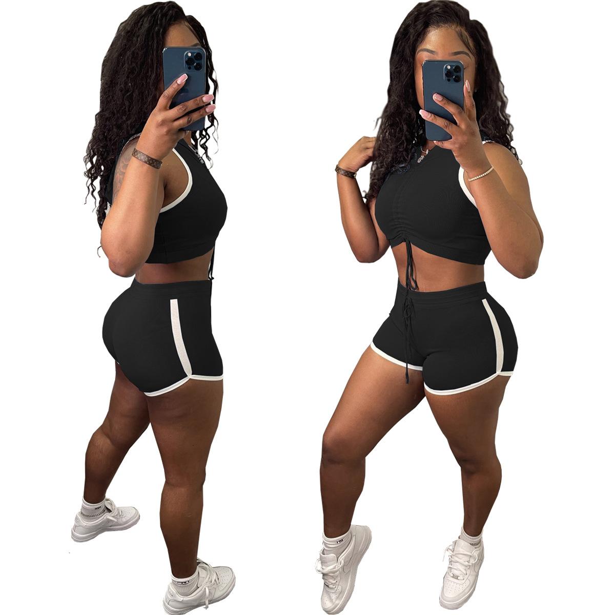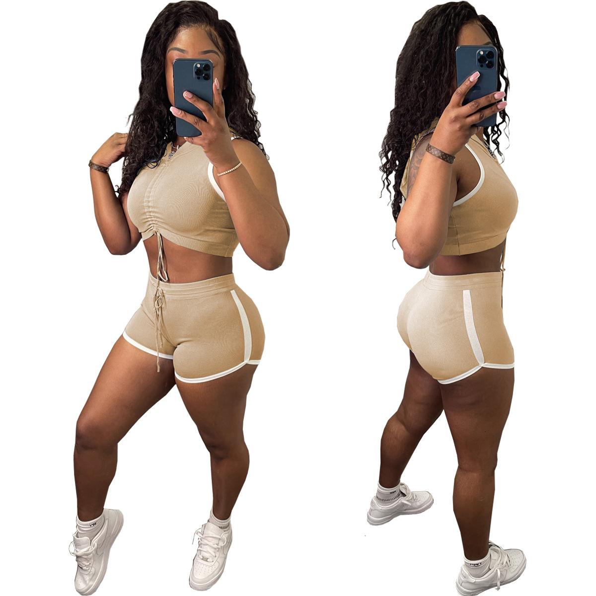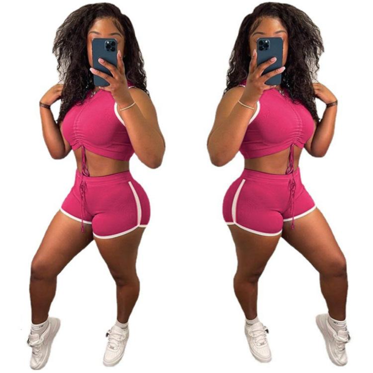 Ropa de mujer transfronteriza 2022, moda europea y americana, chaleco de color sólido, top con ombligo expuesto con cuerda atada y sombrero, conjunto de estilo deportivo