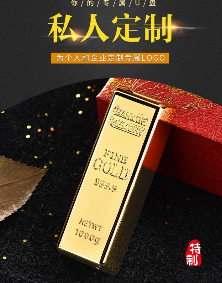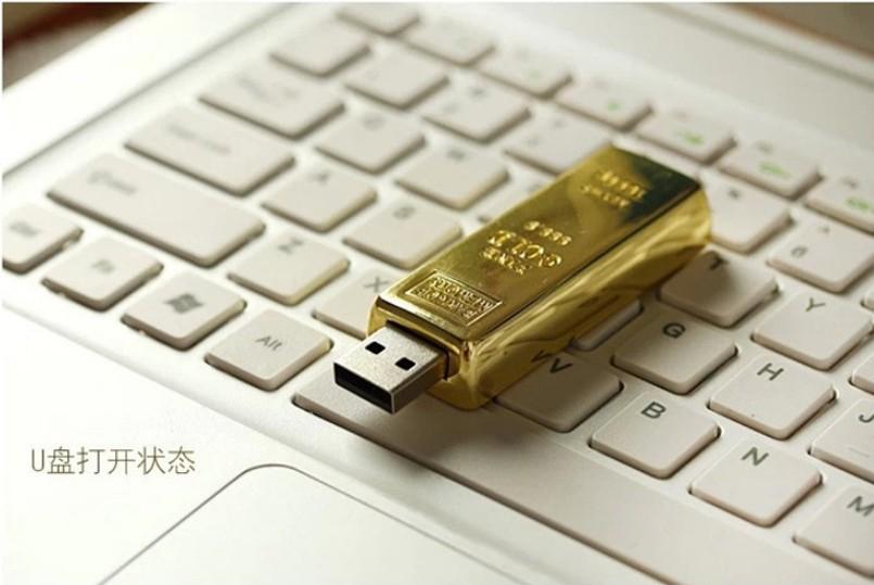 Memoria USB de lingote de oro de metal retráctil ladrillo de oro memoria USB banco regalo publicitario personalizado simulación lingote de oro memoria USB LOGO grabado