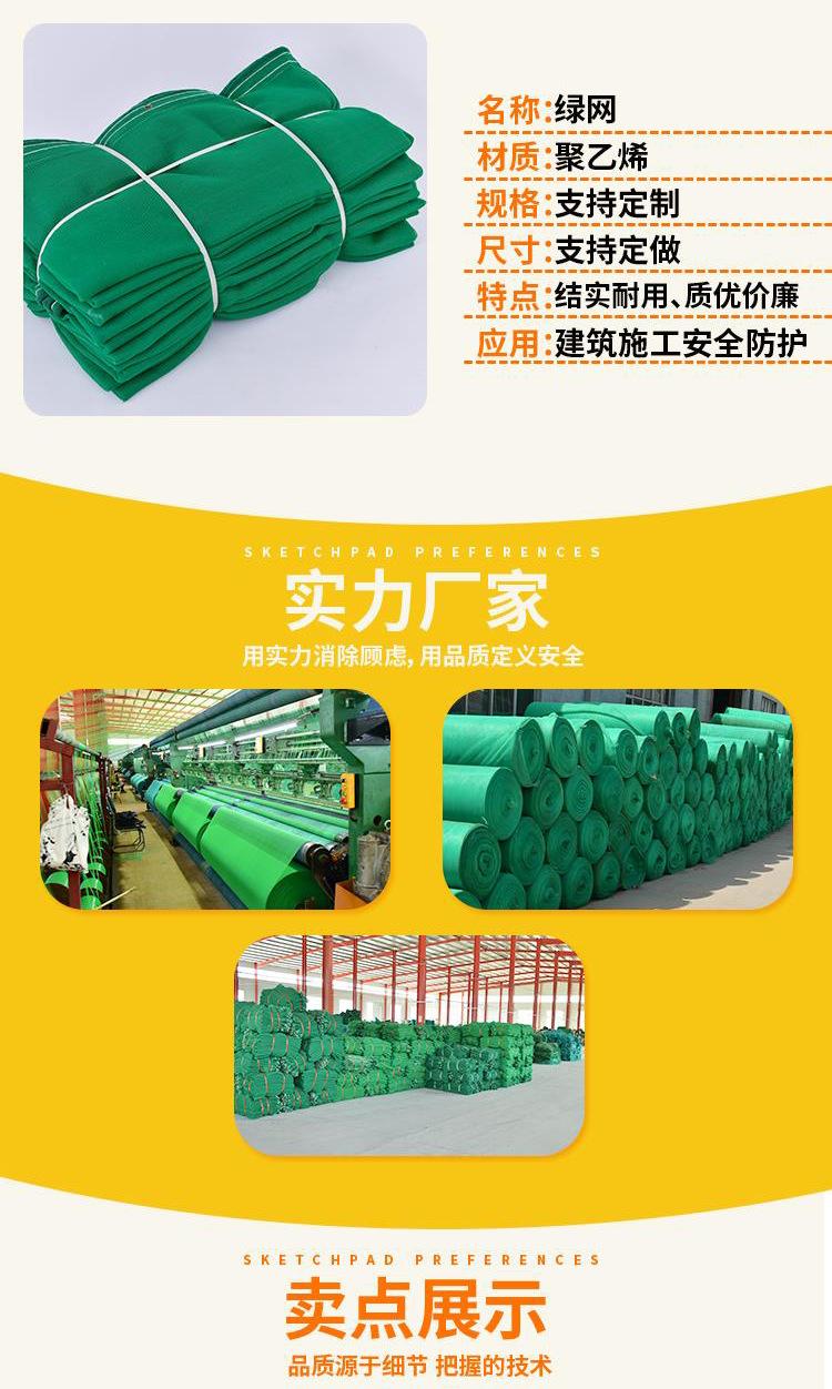 Los fabricantes de redes de seguridad para la construcción suministran directamente una red de seguridad vertical de malla densa verde personalizable para sitios de construcción.
