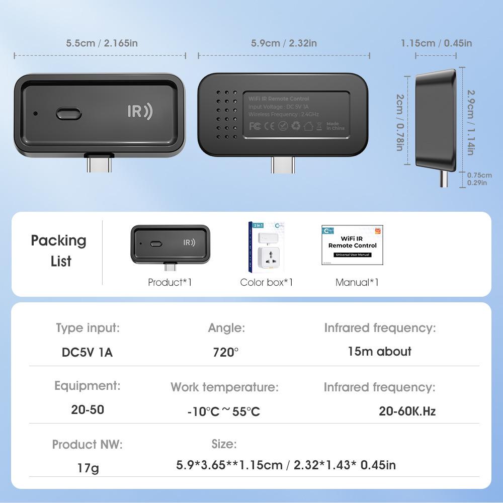 --【rango de señal de 15 m/720°】Admite control infrarrojo a larga distancia de aproximadamente 15 m (sin obstáculos), cobertura de señal omnidireccional de 720°, y el dispositivo puede controlarse eficazmente dentro de este rango.