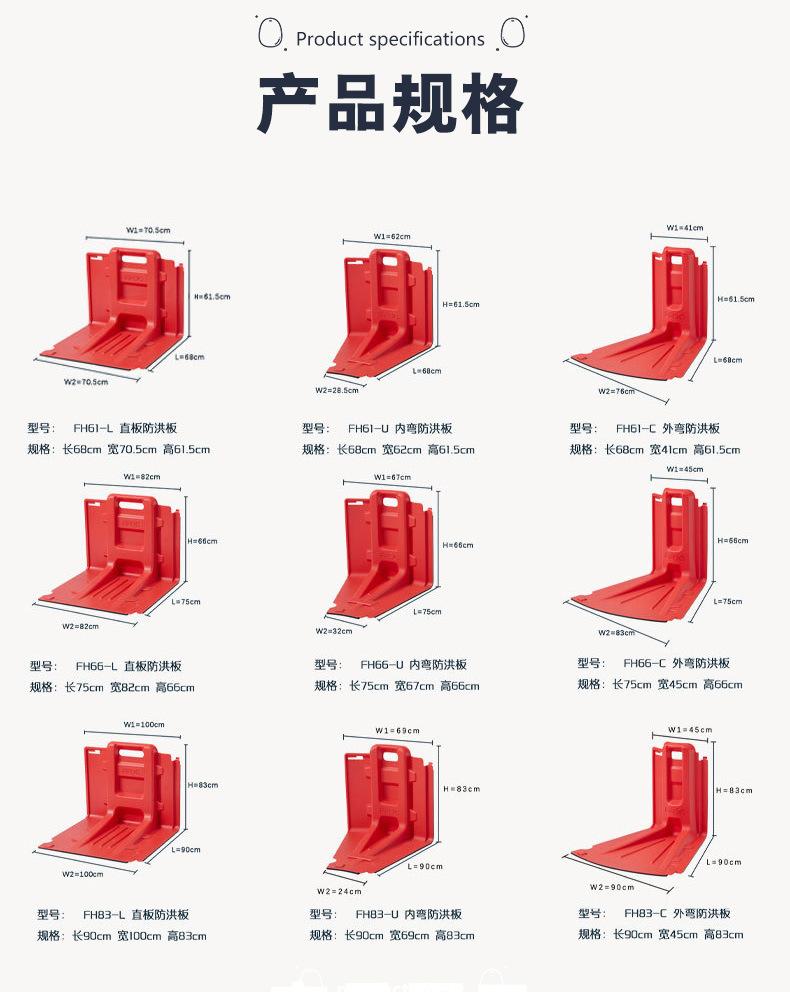 Fabricante de origen, tablero de control de inundaciones de plástico para garaje subterráneo, tablero de control de inundaciones tipo L para escuela, barrera de agua para puerta comunitaria