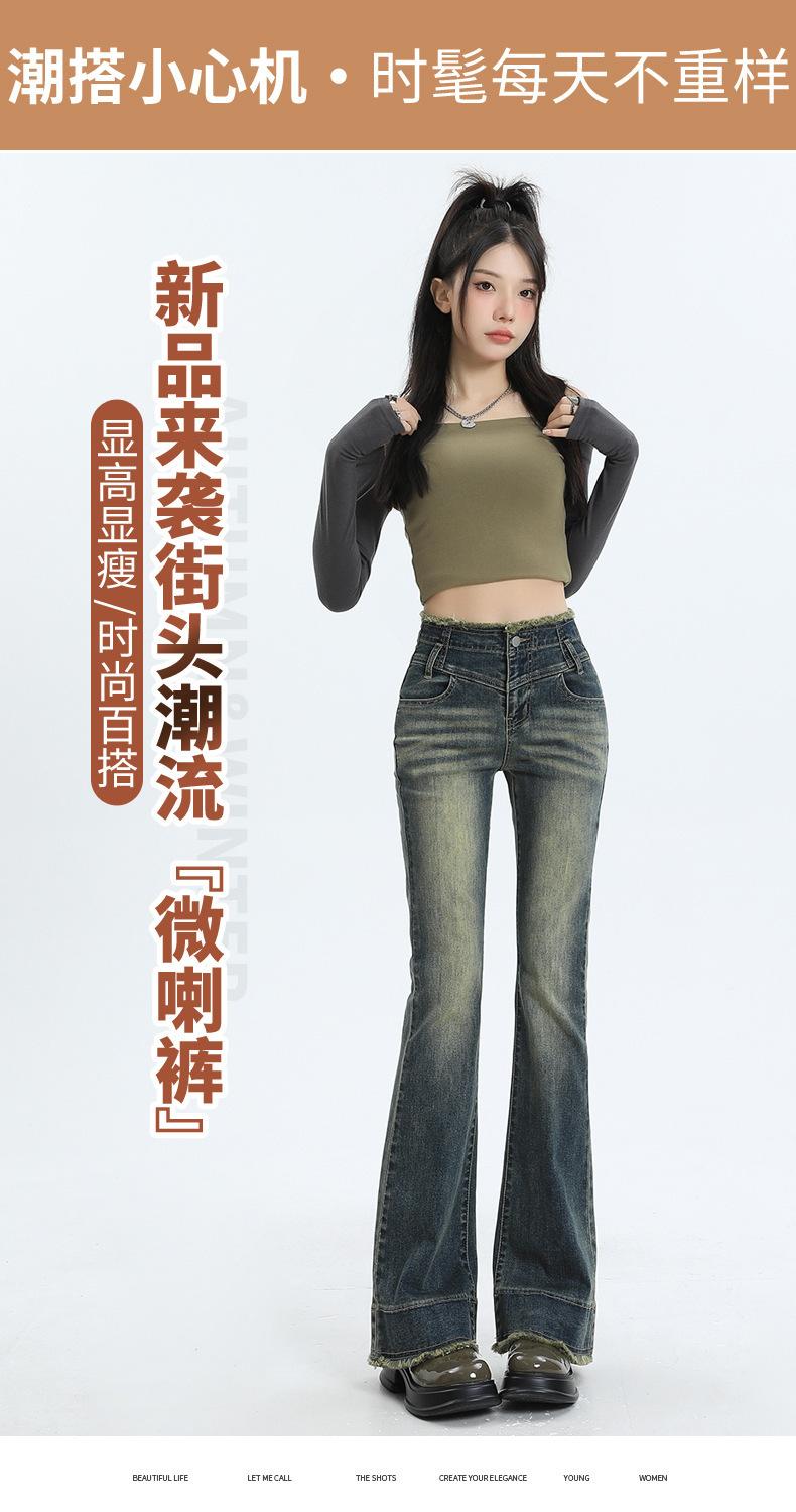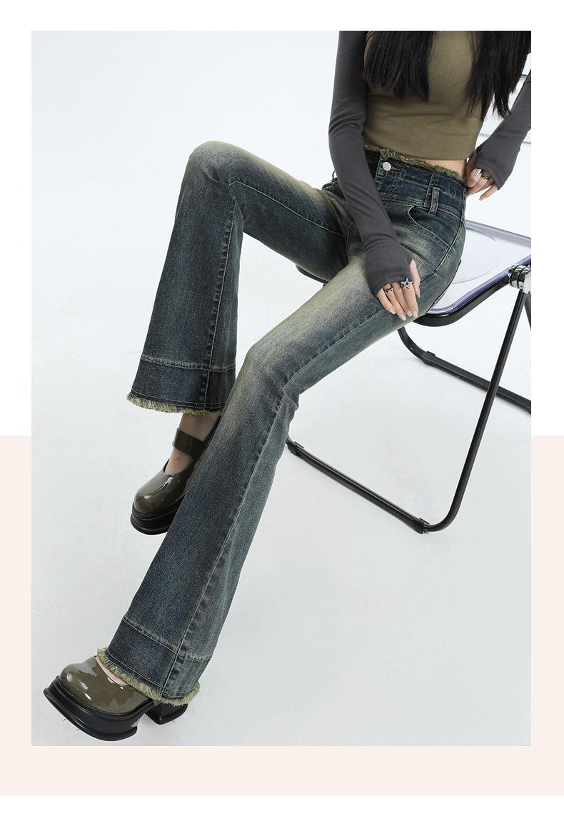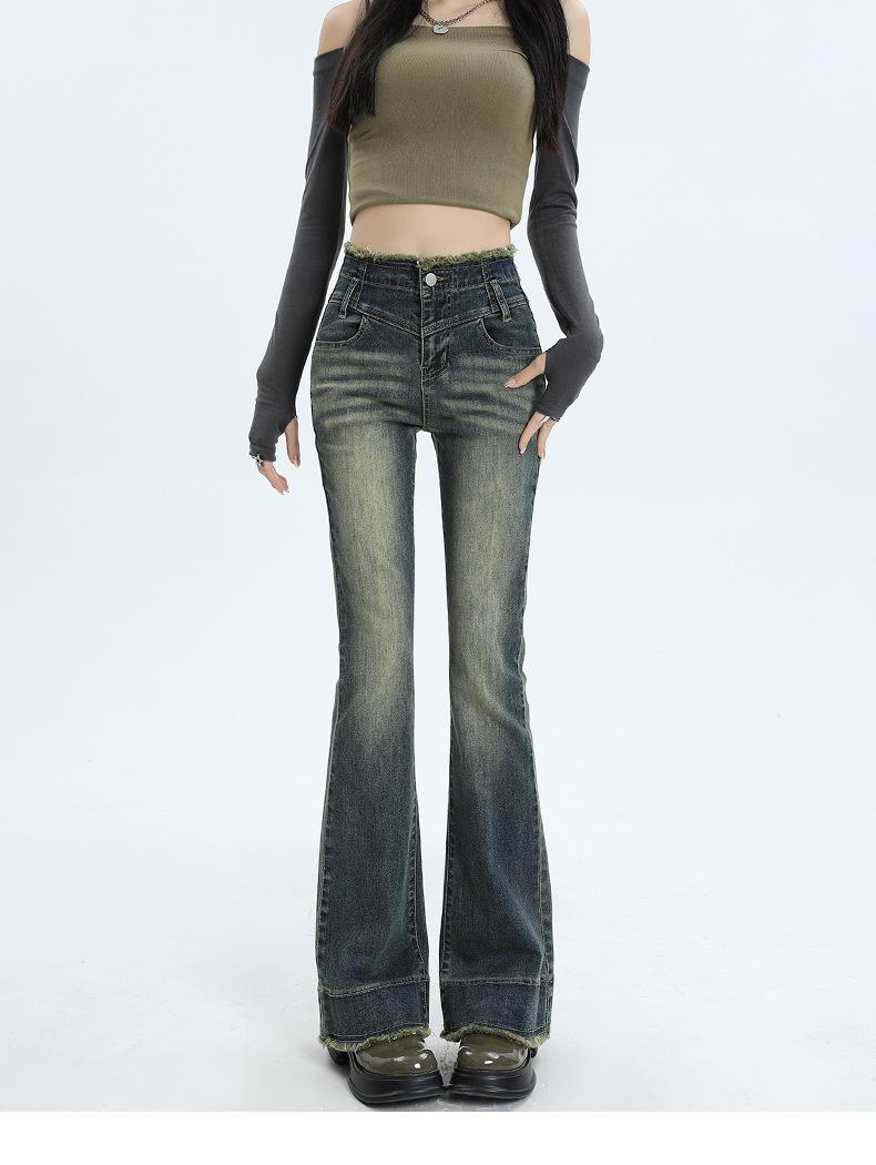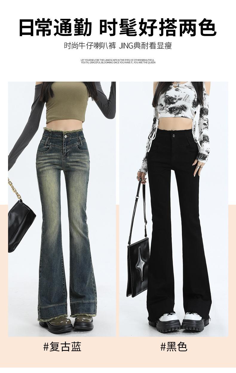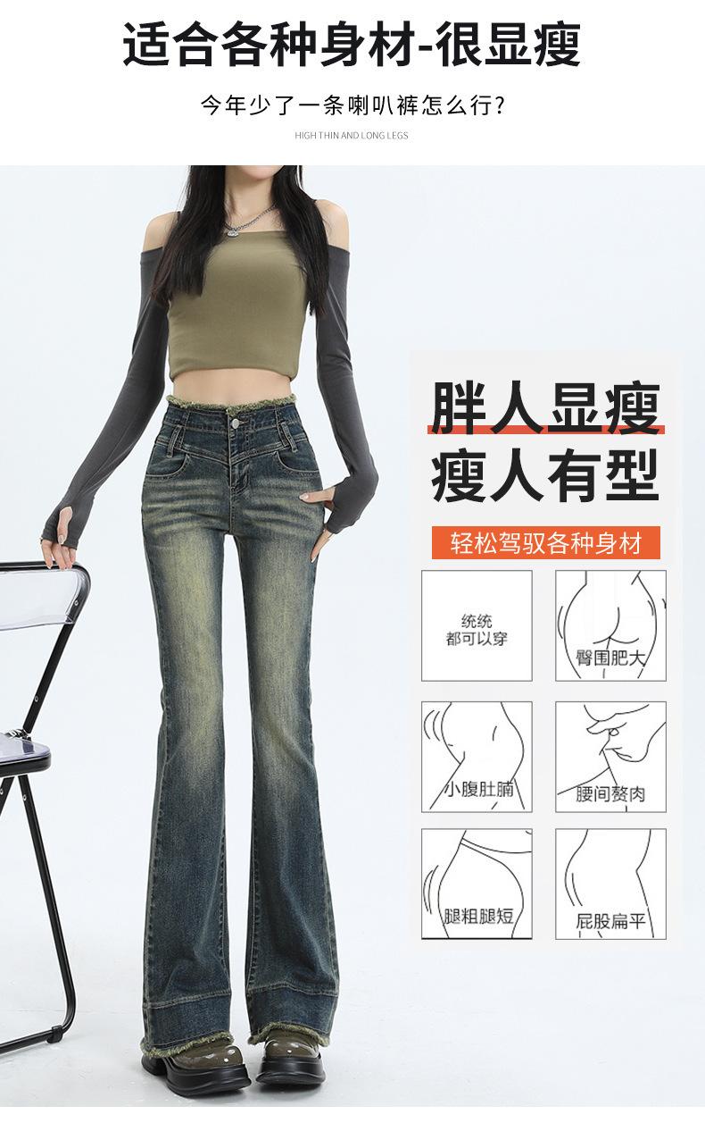 Compra Vaqueros ajustados retro americanos para mujer, primavera 2024, nuevos pantalones acampanados deshilachados con cintura alta y costuras adelgazantes, de pierna ancha al por mayor en Joom.pro