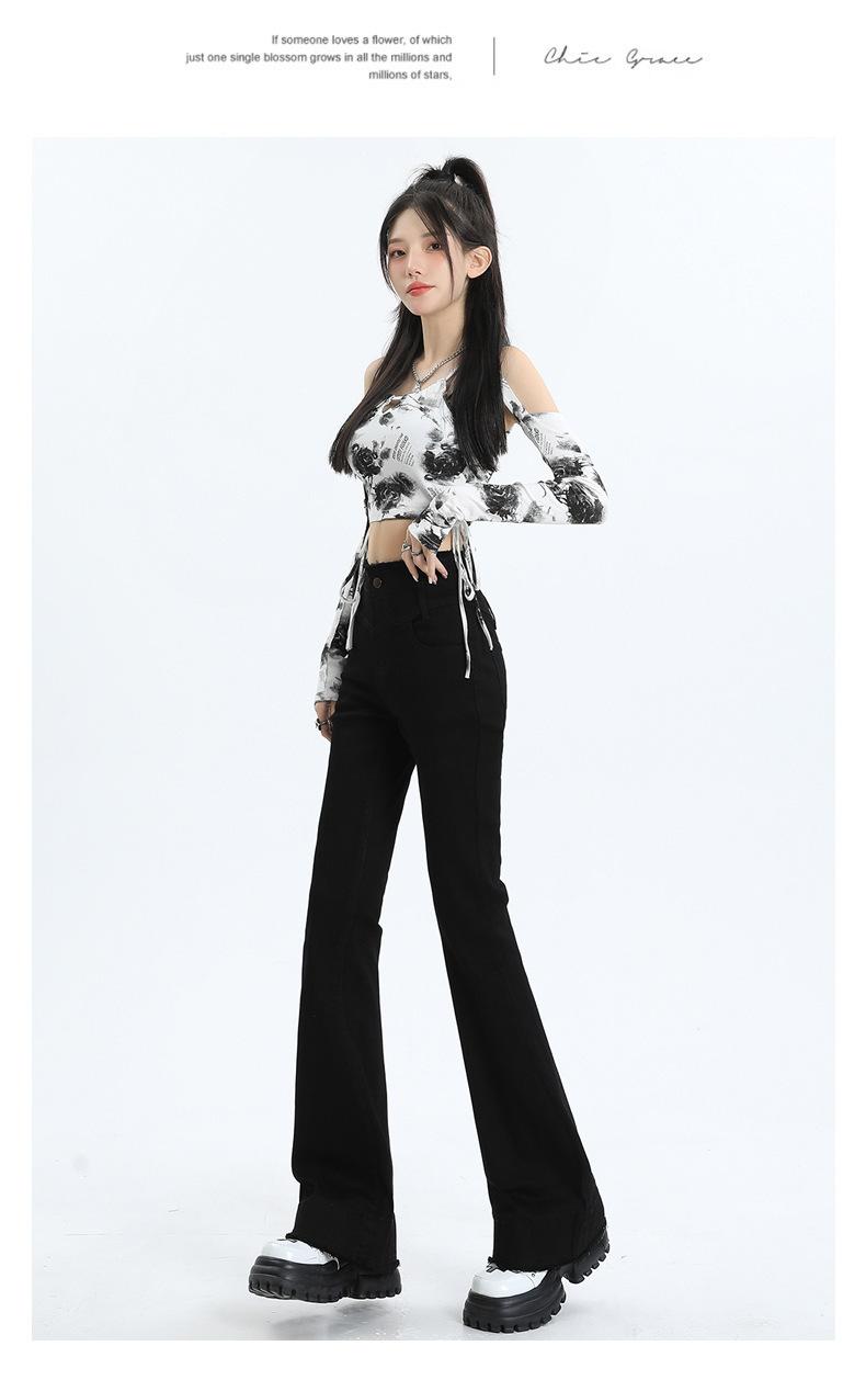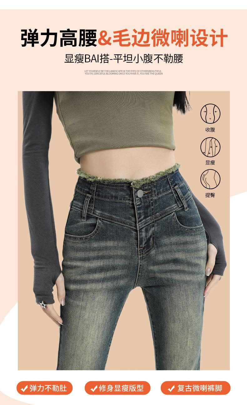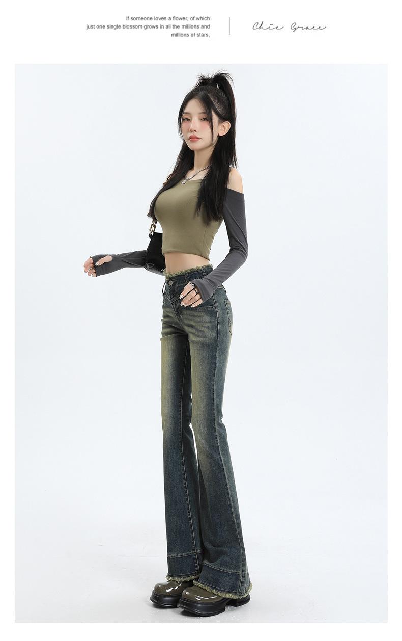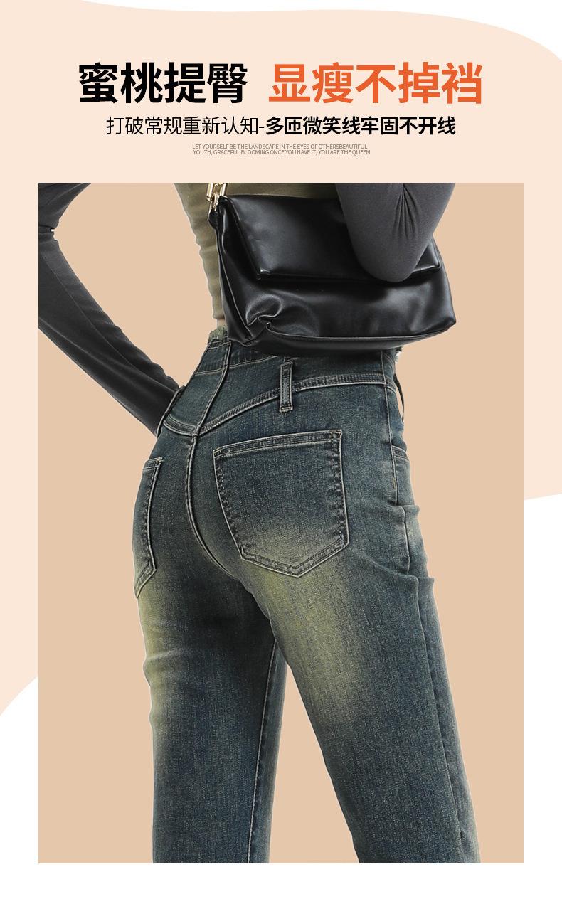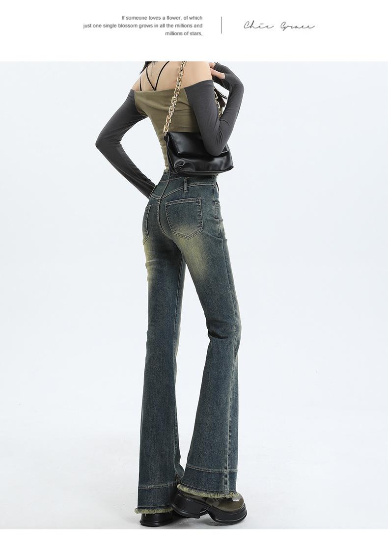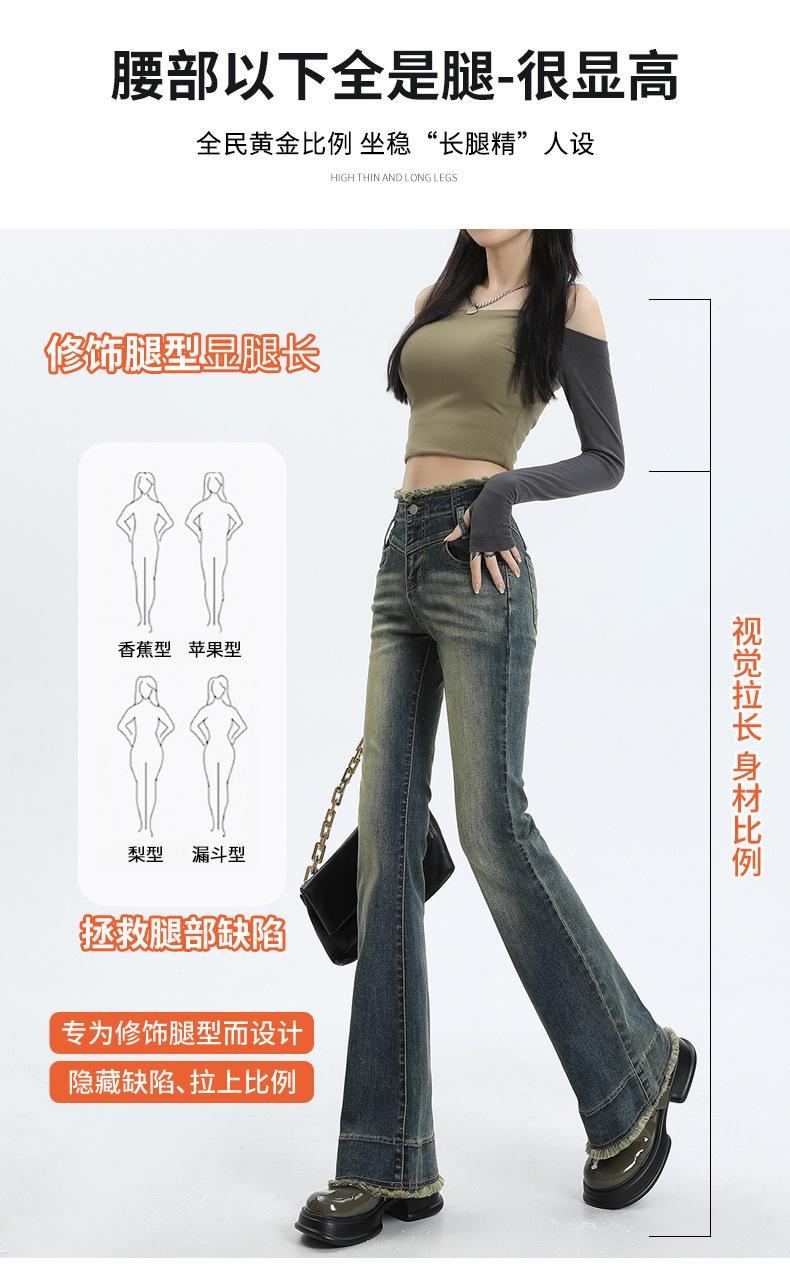 Compra Vaqueros ajustados retro americanos para mujer, primavera 2024, nuevos pantalones acampanados deshilachados con cintura alta y costuras adelgazantes, de pierna ancha al por mayor en Joom.pro