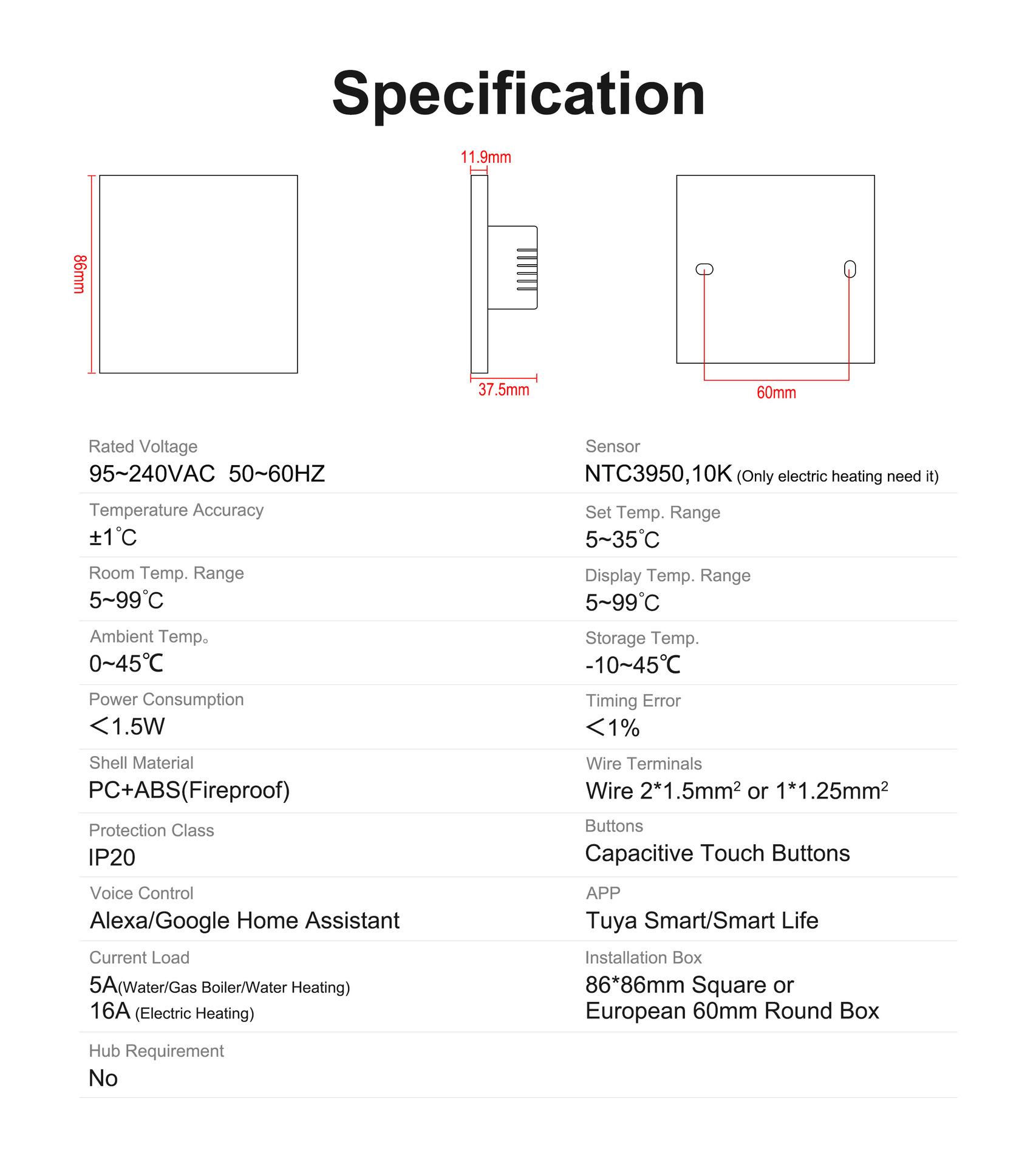 For Water Heating 5A-wifi, For Water Gas Boiler 5A-wifi, For Electric Heating 16A-wifi