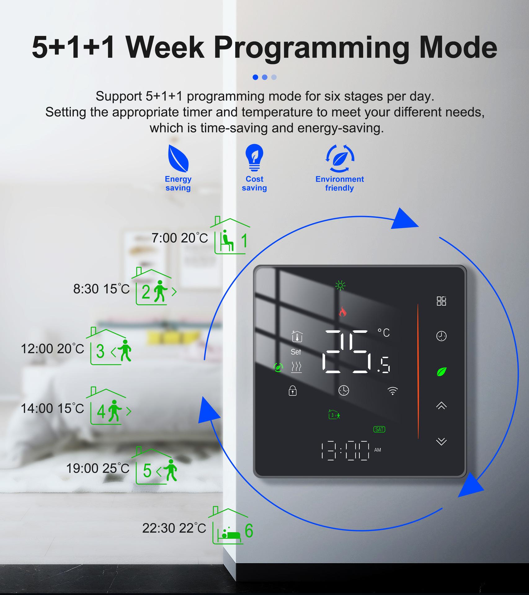 Caldera Inteligente de Pared con Wifi Termostato Inalámbrico Panel de Pantalla Digital Calefacción por Suelo Radiante Doméstica Controlador Digital de Temperatura