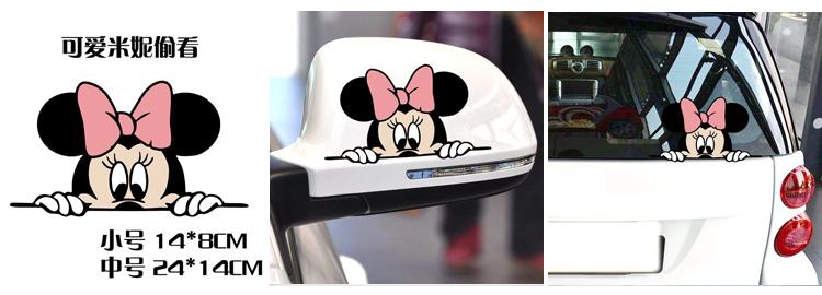 Mickey Minnie Photo Sticker, Smiley rearview mirror black (to leave a message in white), Mickey Minnie peeking...