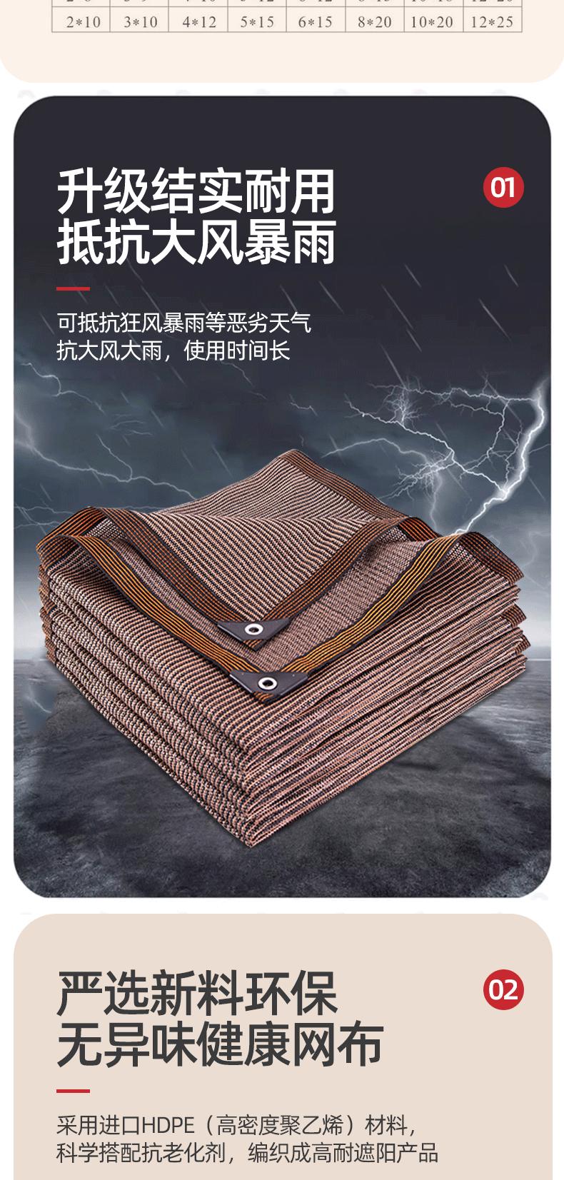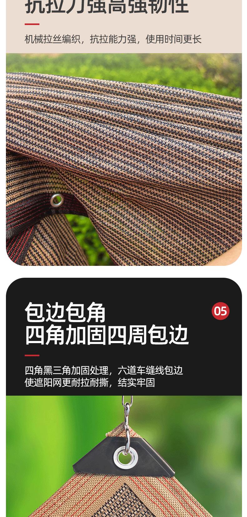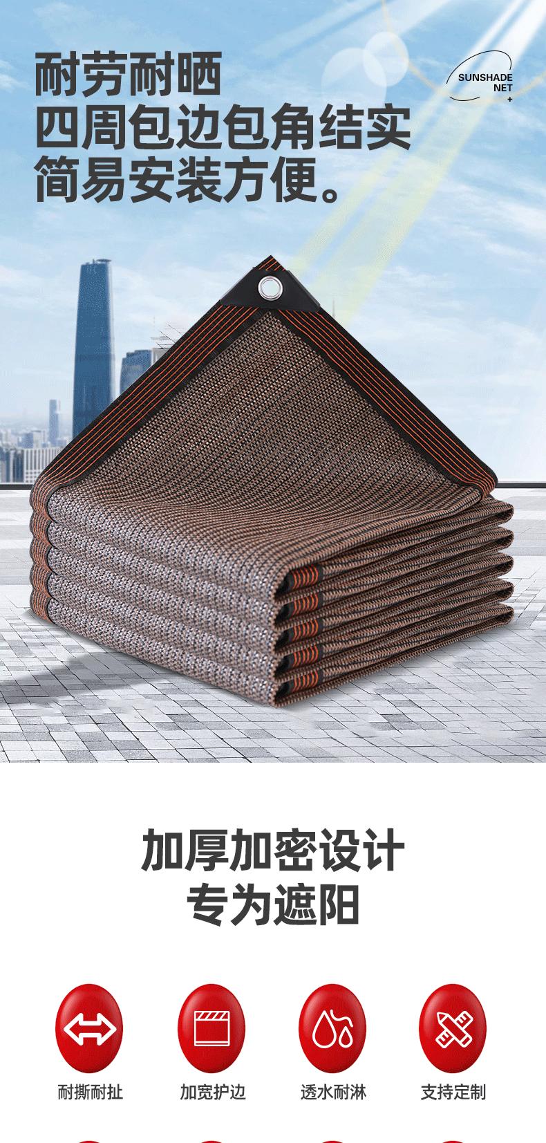 Malla de sombra marrón transfronteriza engrosada para balcón, malla de privacidad encriptada, protector solar antienvejecimiento con dobladillo perforado