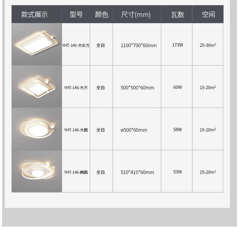 White [main light for living room—110*70cm], White [square-bedroom lamp—50*50cm], White [round—bedroom lamp—50...