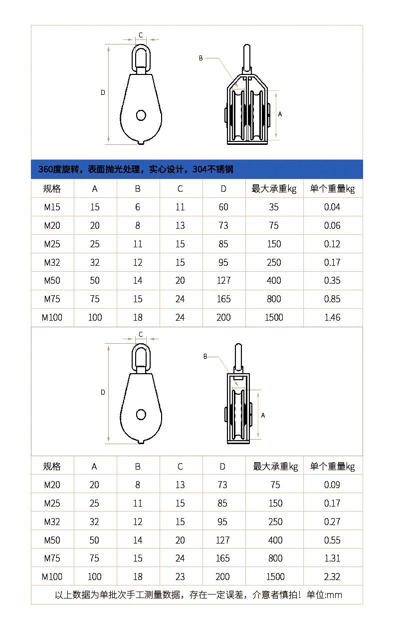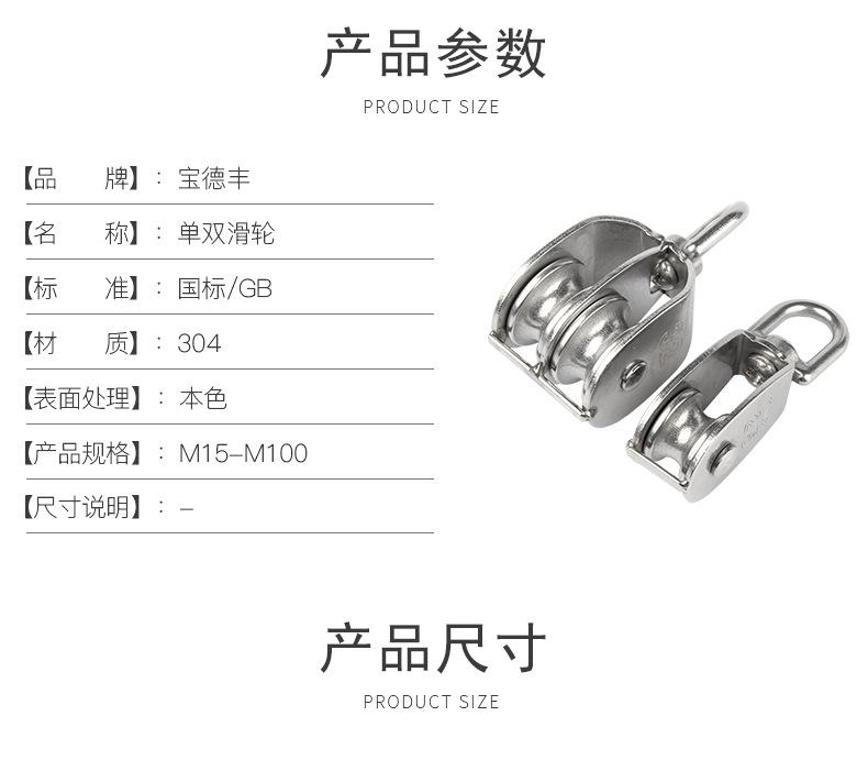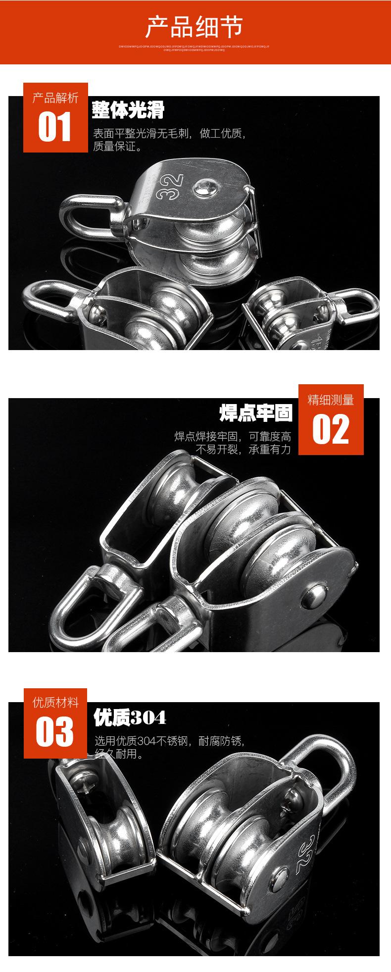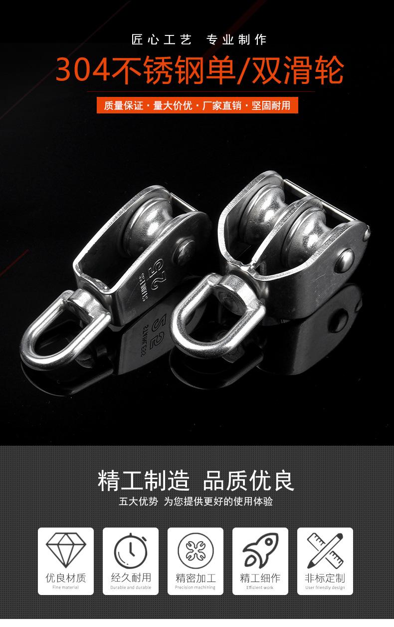 Polea de acero inoxidable 304, polea de anillo en forma de U, polea de elevación de rueda simple o doble, polea de gancho