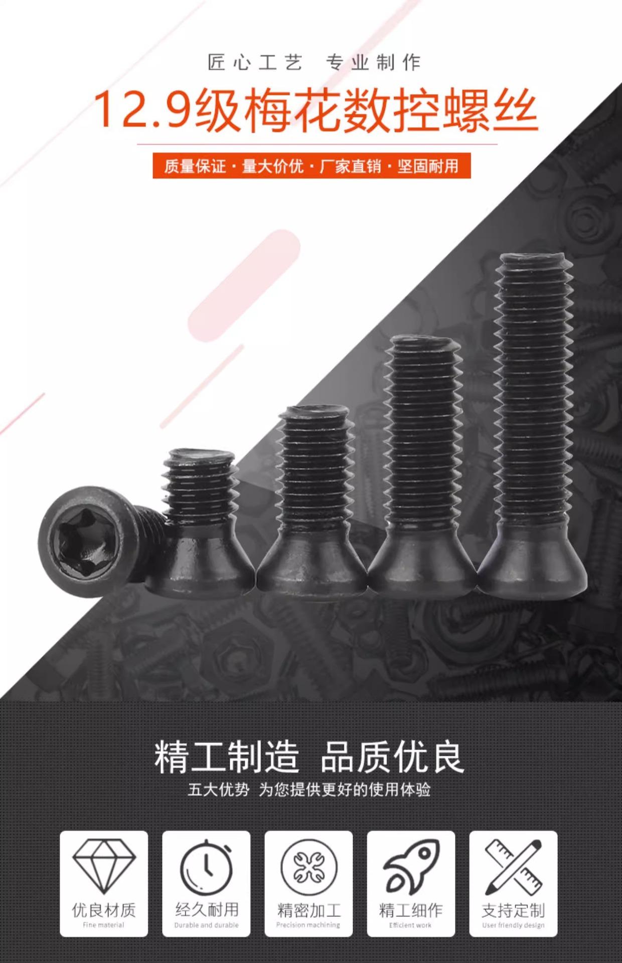 Tornillo Torx grado 12.9 Tornillo para herramienta CNC Fresa de inserción Tornillo para herramienta m2m2.5m3m3.5m4m5m6