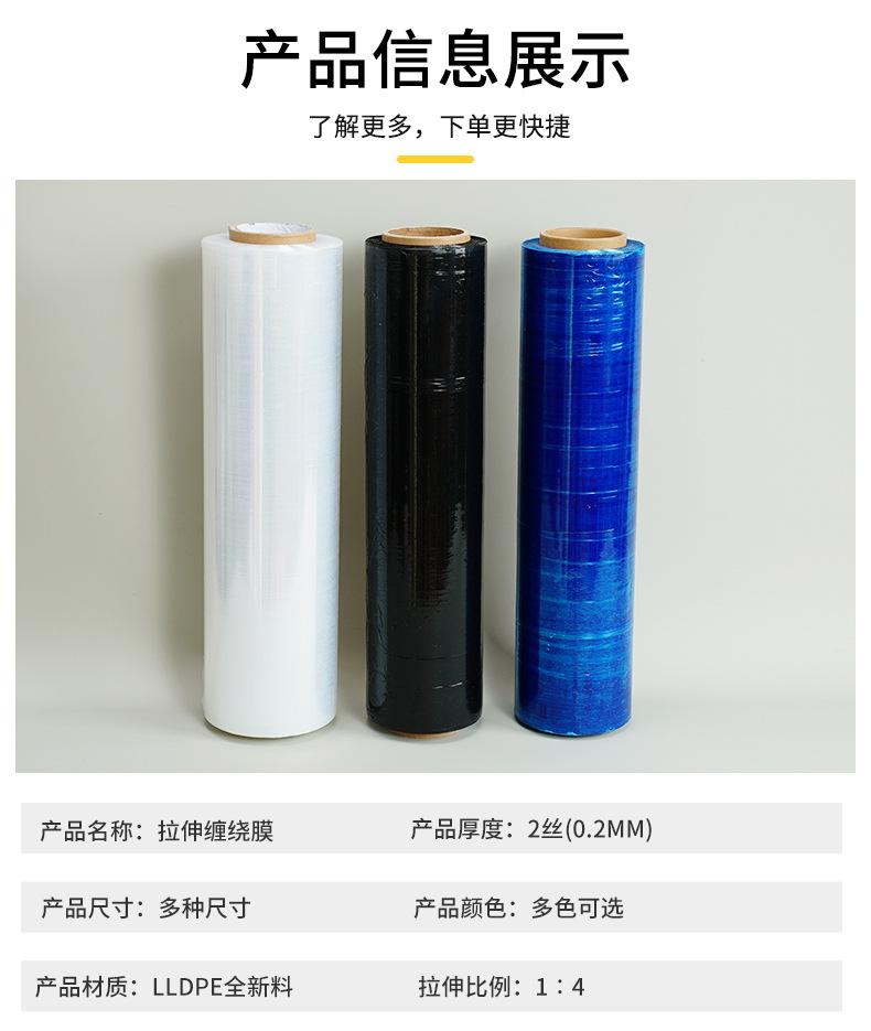 Película estirable de color, película de bobinado de PE, película de embalaje de plástico, película industrial, película de embalaje de bandeja logística, película resistente a la perforación