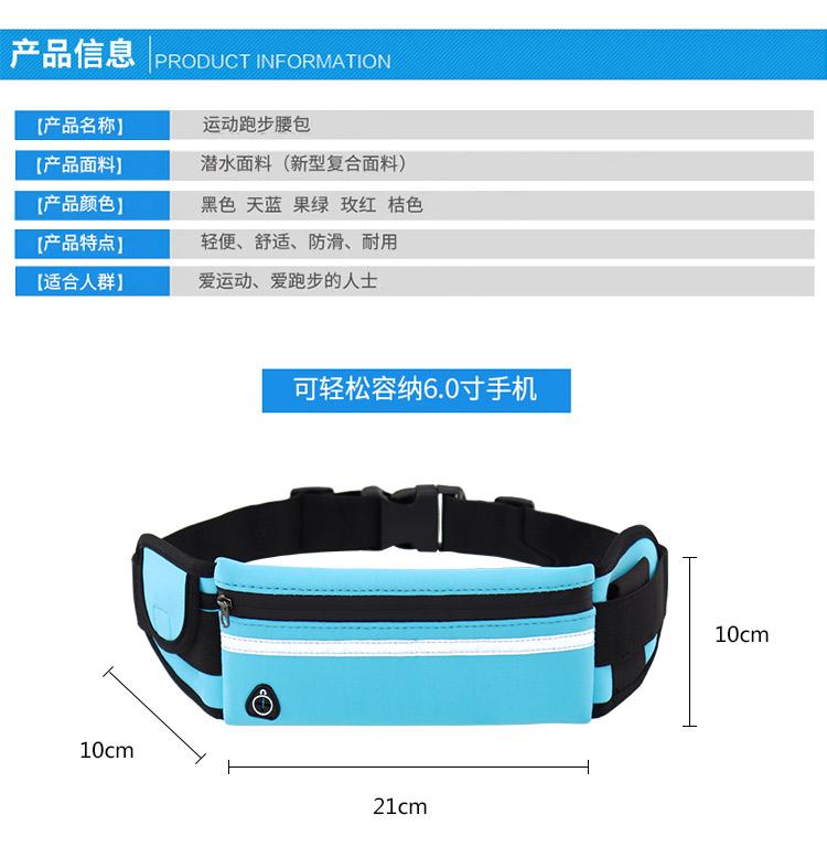 Riñonera deportiva para correr, fabricada en tejido de buceo, con capacidad para un teléfono móvil de 6 pulgadas, tamaño 21 x 10 x 10 cm.