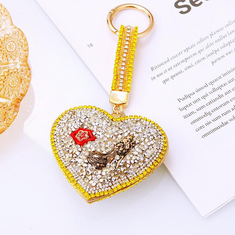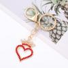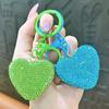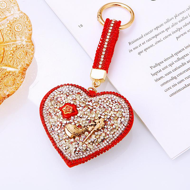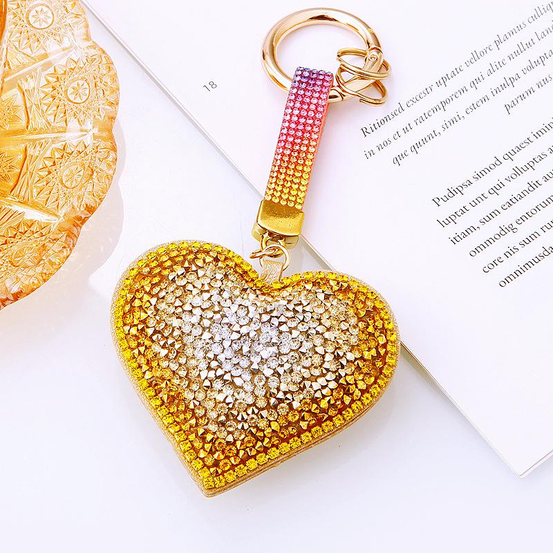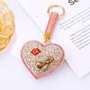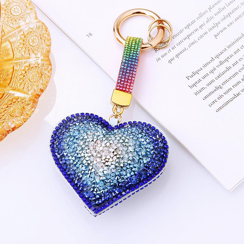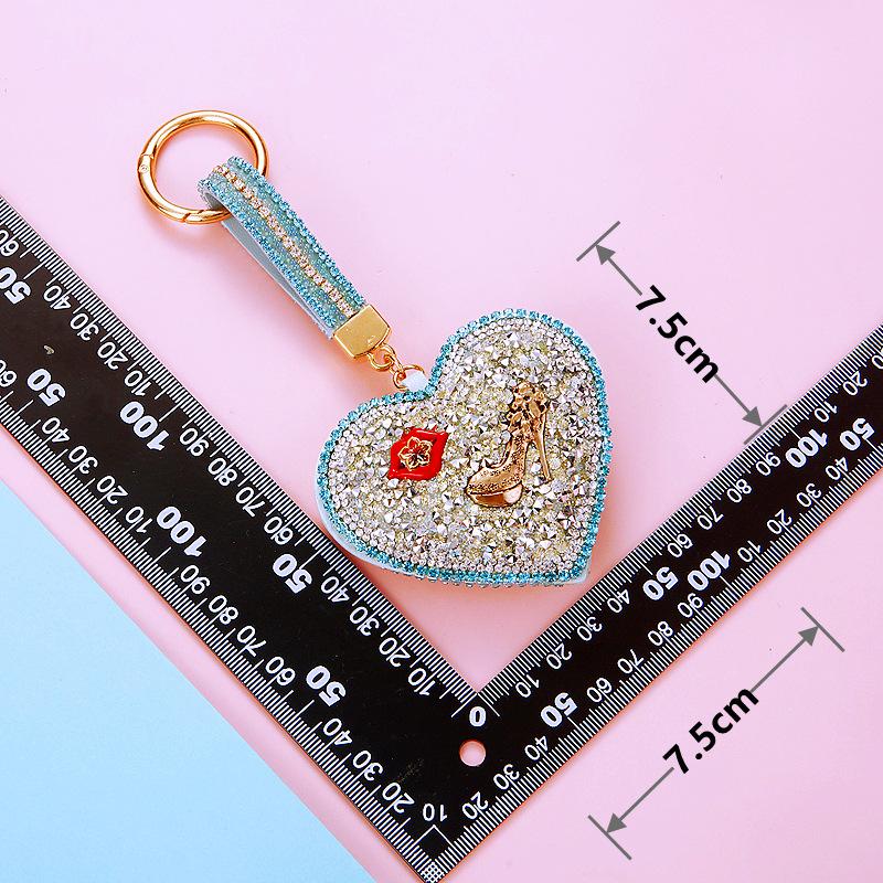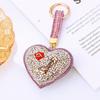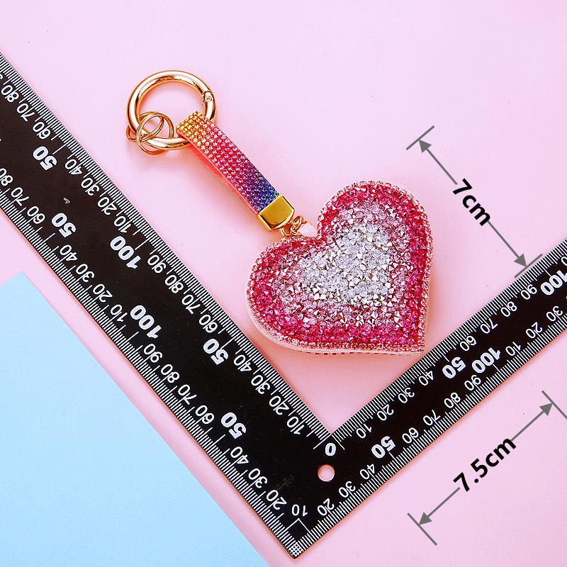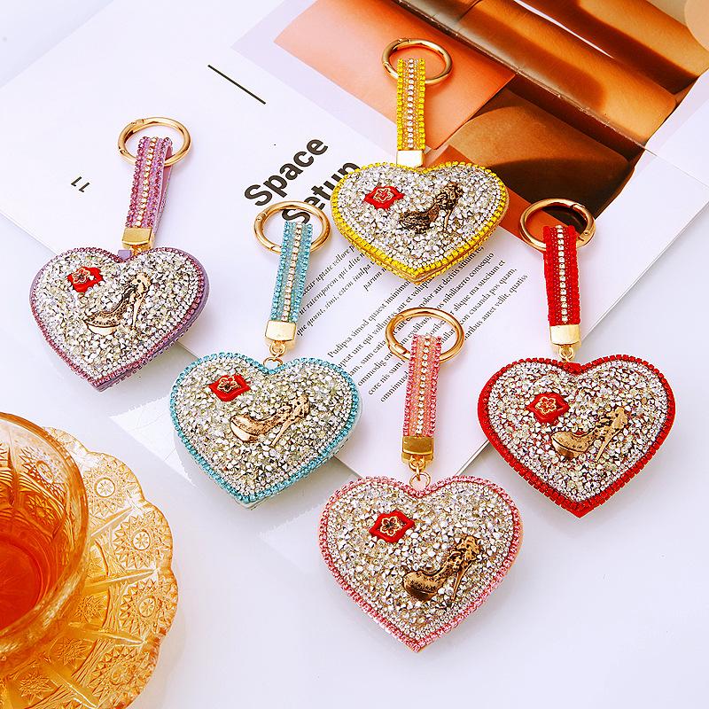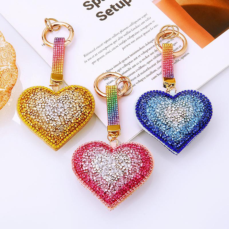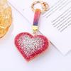 Llavero de coche con forma de corazón con incrustaciones de diamantes, de cuero, bonito colgante para bolso de mujer, llavero, anillo, cuerda de taladro en forma de corazón, regalo