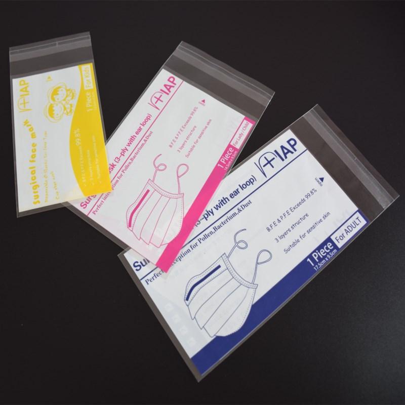 Bolsa autoadhesiva opp, bolsa transparente con sello autoadhesivo, bolsa de embalaje para mascarillas, bolsa de plástico, impresión personalizada al por mayor