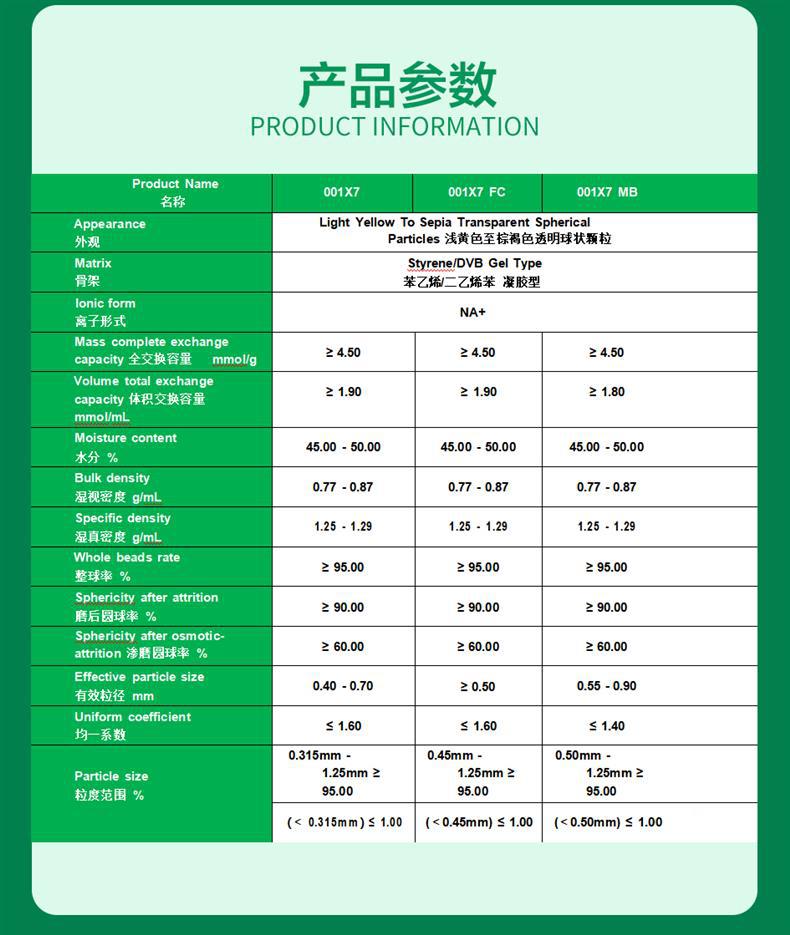 [Tratamiento de agua] Resina de intercambio catiónico de lecho flotante de ácido fuerte 001X7FC Eliminación de agua blanda Eliminación de calcio y magnesio duros