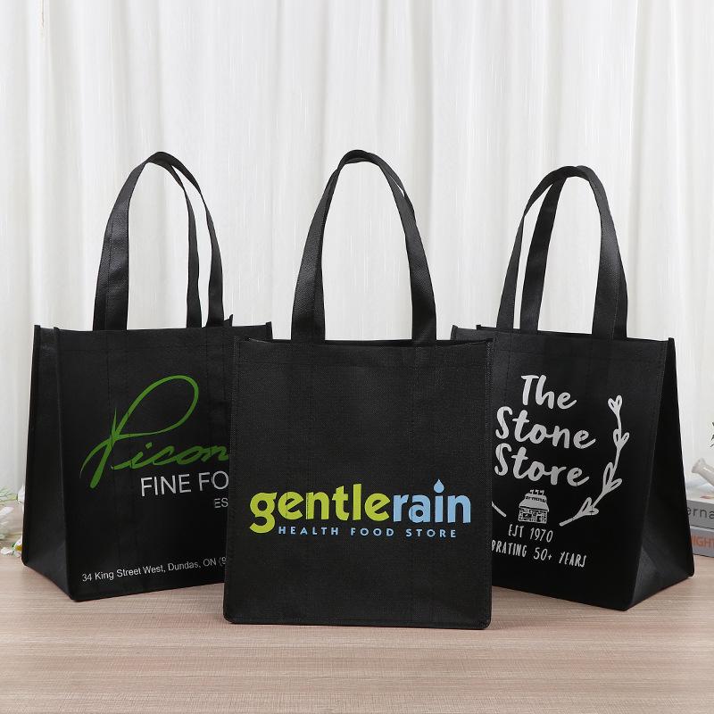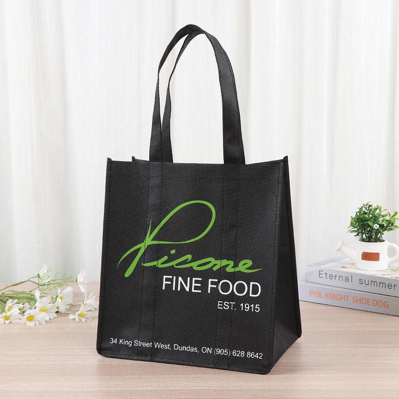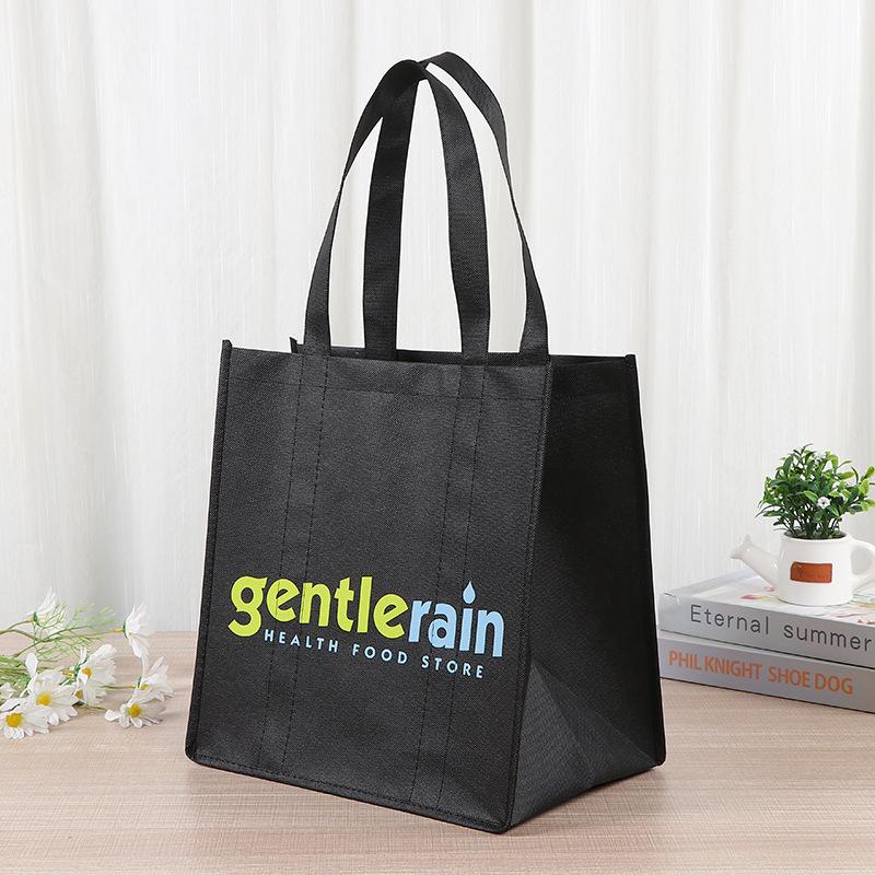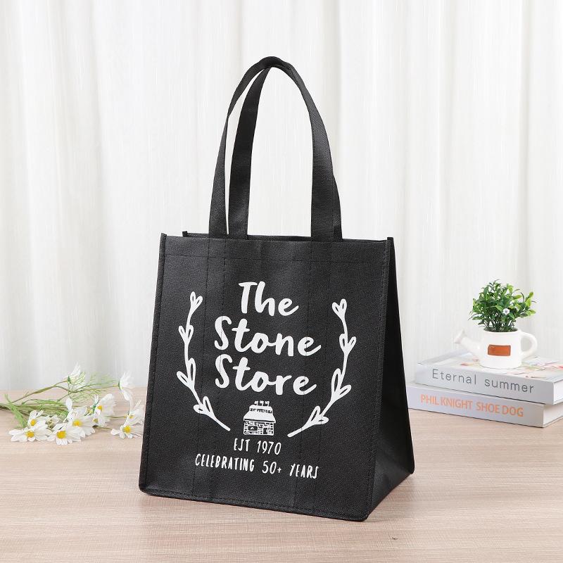 Bolso de mano negro no tejido, universal, para supermercado, con costuras para coche, para la compra de alimentos, al por mayor, tipo cartera estéreo, no tejido.
