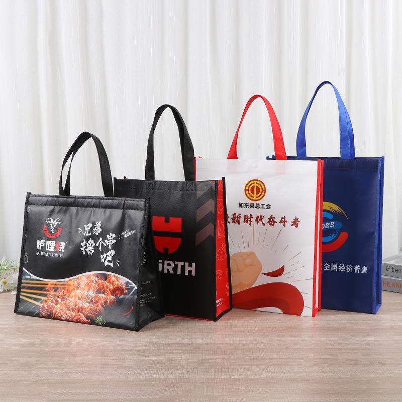 Bolso de mano no tejido, bolso publicitario, bolso de compras no tejido, recubierto, impresión a color, costura de coche, bolso no tejido, venta al por mayor