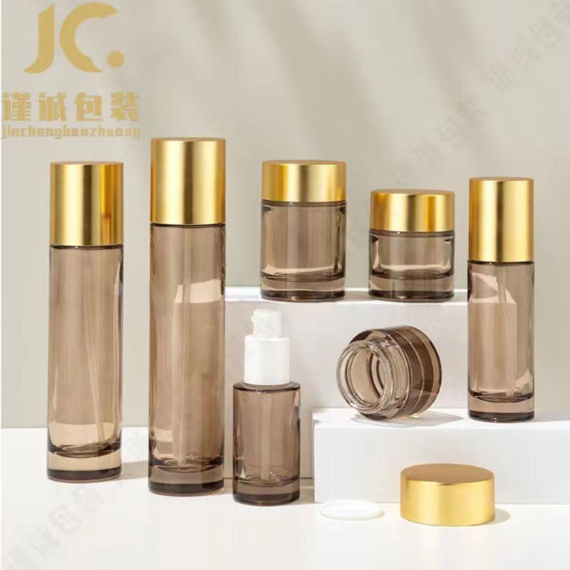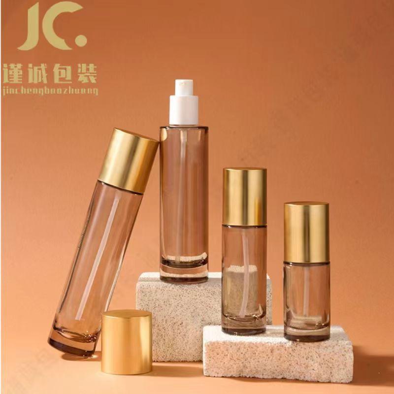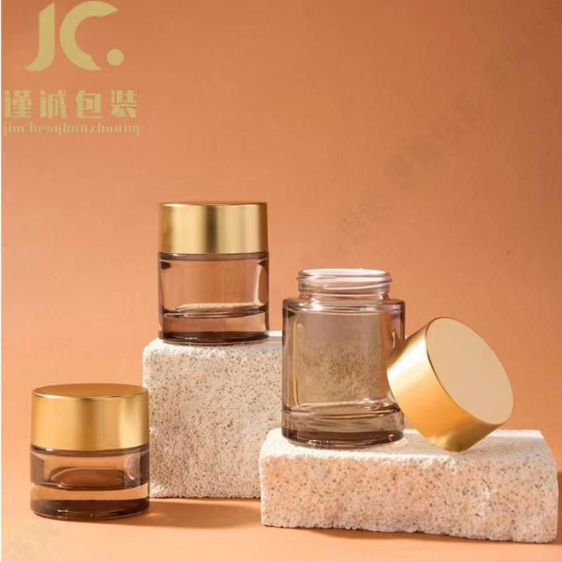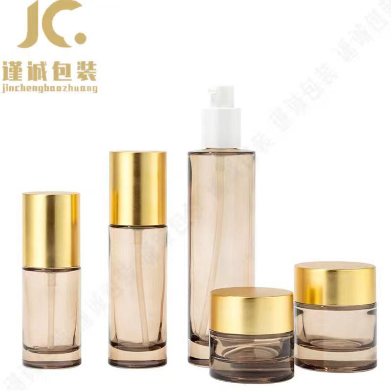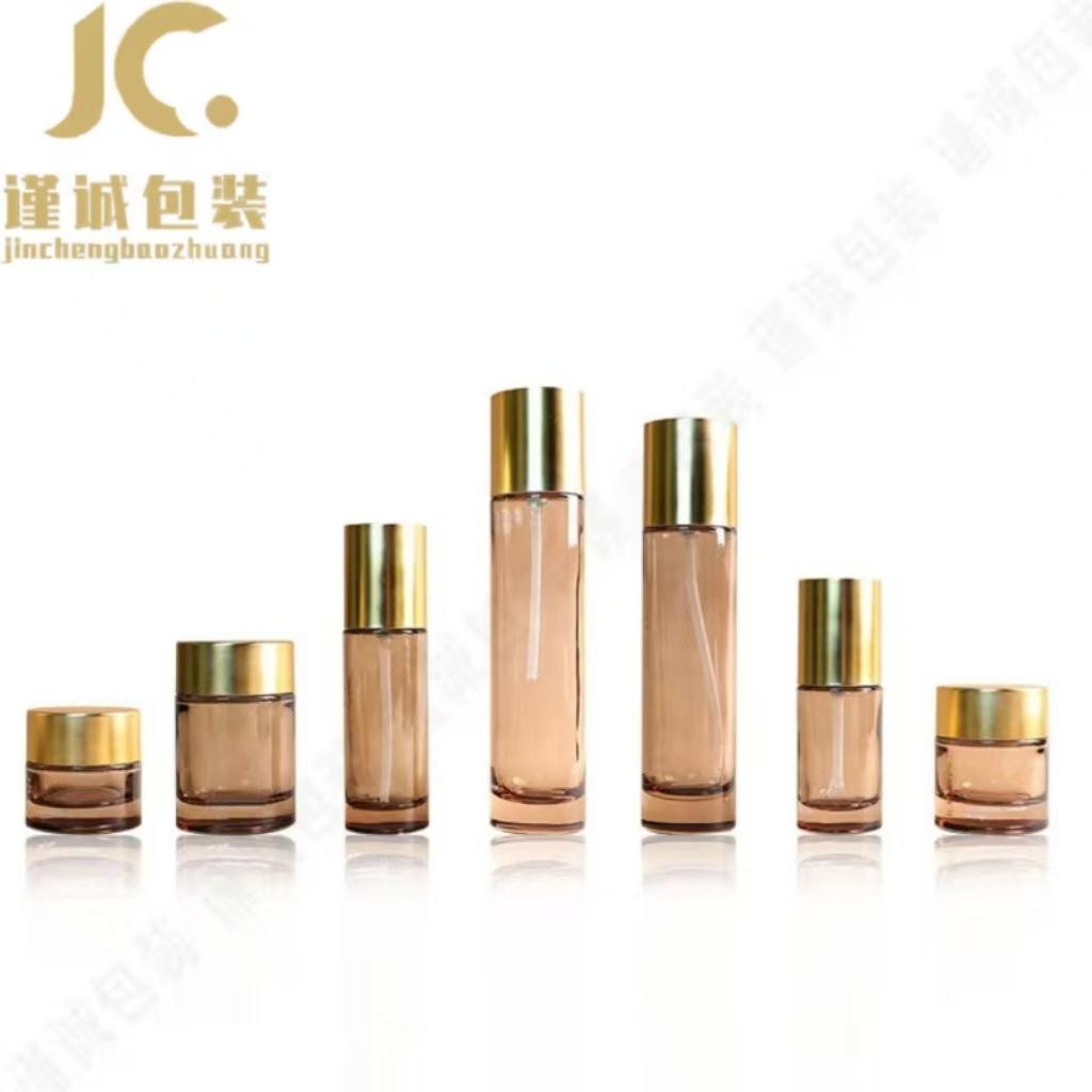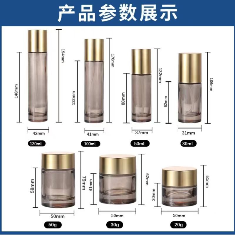 20g cream bottle (hand pad plated with dummy gold cover 0; Transparent; Glass, 30g cream bottle (hand pad plat...