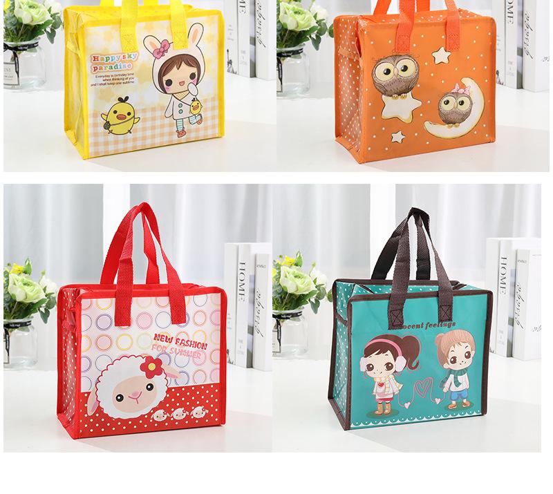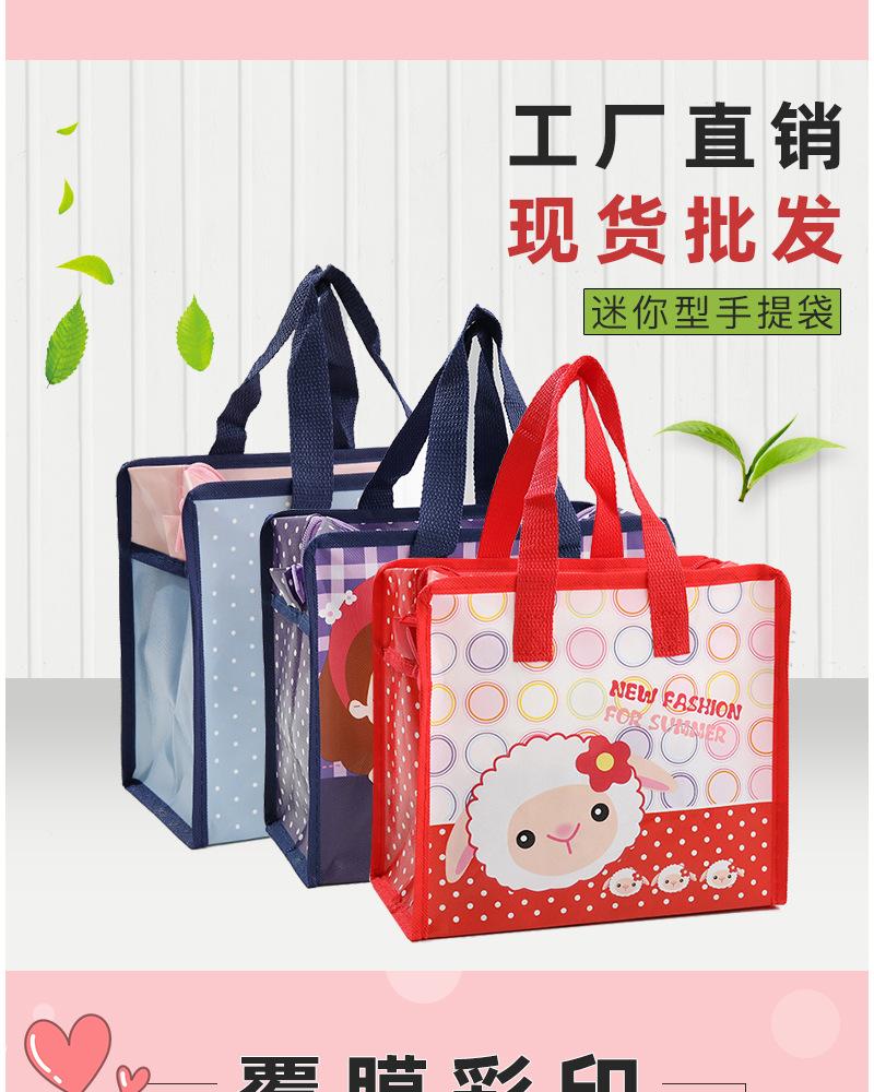 Bolsa de mano no tejida recubierta de película en stock, bolsa de compras con dibujos animados para niños y niñas, embalaje publicitario para llevar, bolsa de regalo al por mayor