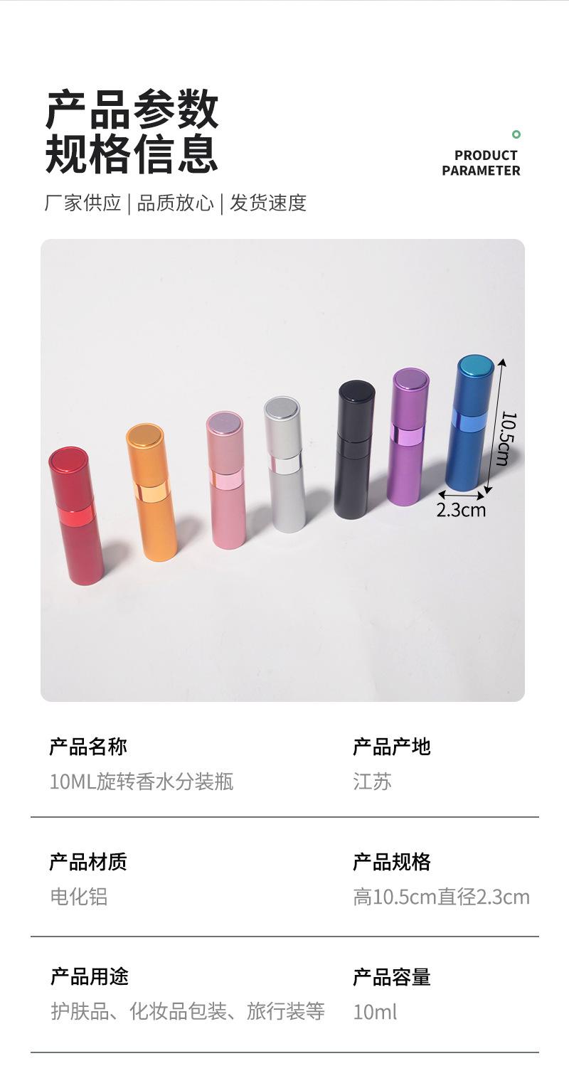 Botella de Perfume Giratoria Recargable de 10 ml en Stock, Botella de Spray Portátil Retráctil, Botella de Spray, Botella Vacía de Muestra, Pequeña Capacidad
