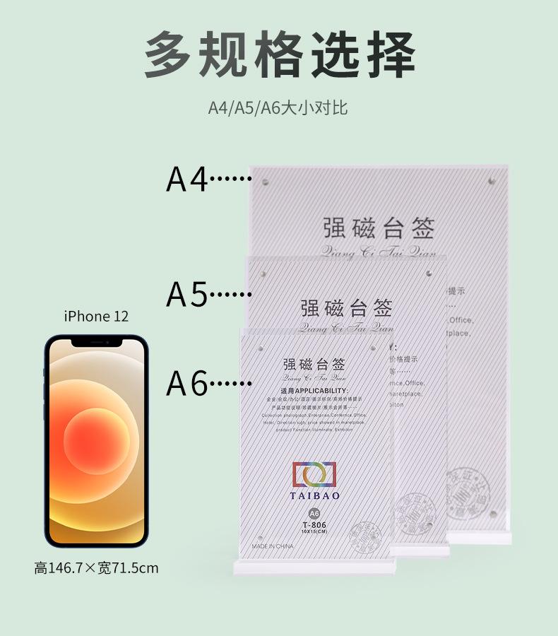 T-shaped strong magnetic table card-horizontal style-150x100mm