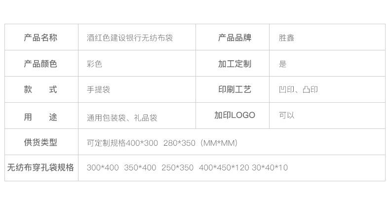 Foshan Shengxin Nonwoven Products Co., Ltd. lleva muchos años prestando atención a la protección del medio ambiente y se compromete a crear un entorno limpio y confortable. Shengxin es un fabricante profesional de bolsas no tejidas y ofrece servicios personalizados. Con una amplia experiencia en producción, satisface las necesidades de producción a gran escala y de alta calidad, equipos completos de preimpresión y posimpresión, flujos de proceso diversificados y ofrece a sus clientes una amplia gama de opciones de impresión. Sus principales productos son: bolsas no tejidas, bolsas ecológicas, bolsas portátiles no tejidas, bolsas plegables no tejidas, bolsas perforadas no tejidas, bolsas de compra, bolsas de regalo, bolsas publicitarias, delantales publicitarios, bolsas tridimensionales no tejidas, bolsas Oxford, bolsas de algodón y diversos tipos de bolsas para ropa y vino, entre otros productos de embalaje ecológicos. El producto está fabricado con tela no tejida spunbond de polipropileno, que es resistente a la humedad, transpirable, flexible, incombustible, fácil de descomponer y no irritante. La gestión íntegra es nuestra base, y el servicio atento es la base de nuestro desarrollo. ¡Les damos la más cordial bienvenida a sus consultas y a su patrocinio!