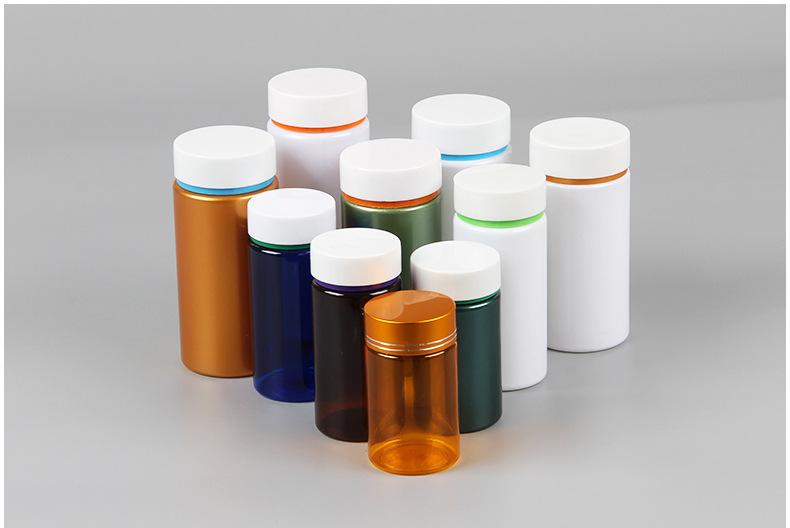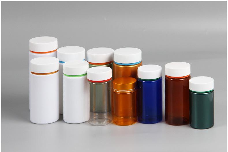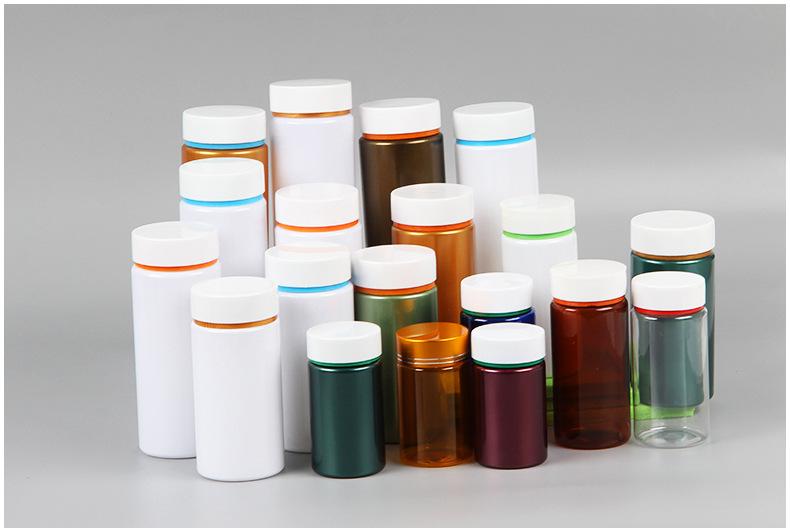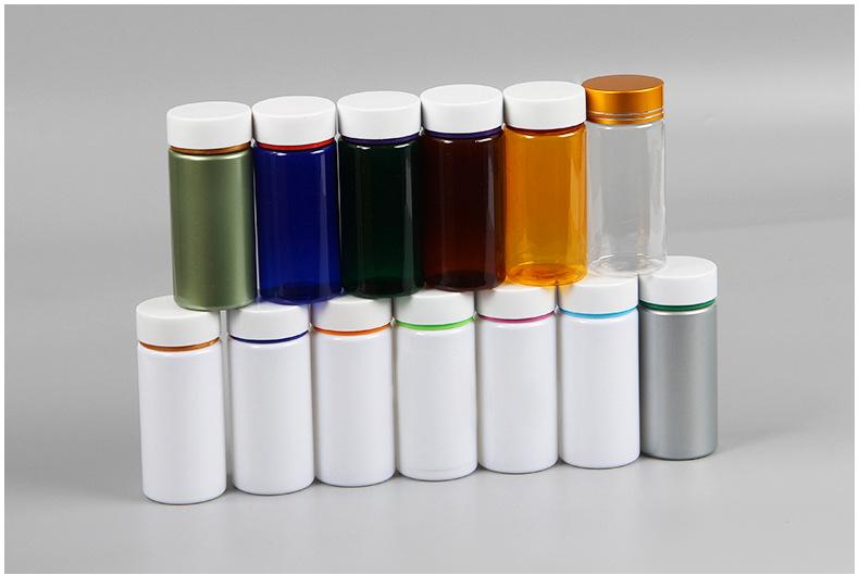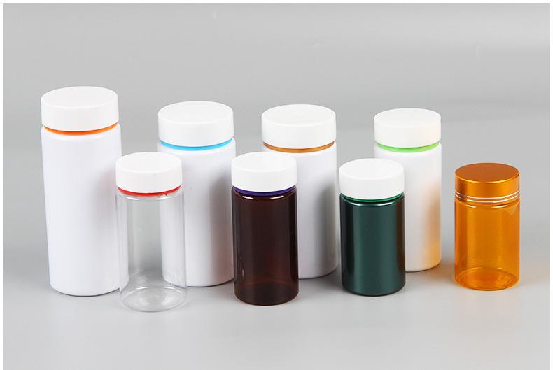 Botella de medicina transparente de plástico PET de grado alimenticio, frasco de plástico con cápsula de calcio de boca ancha, botella de medicina vitamínica al por mayor