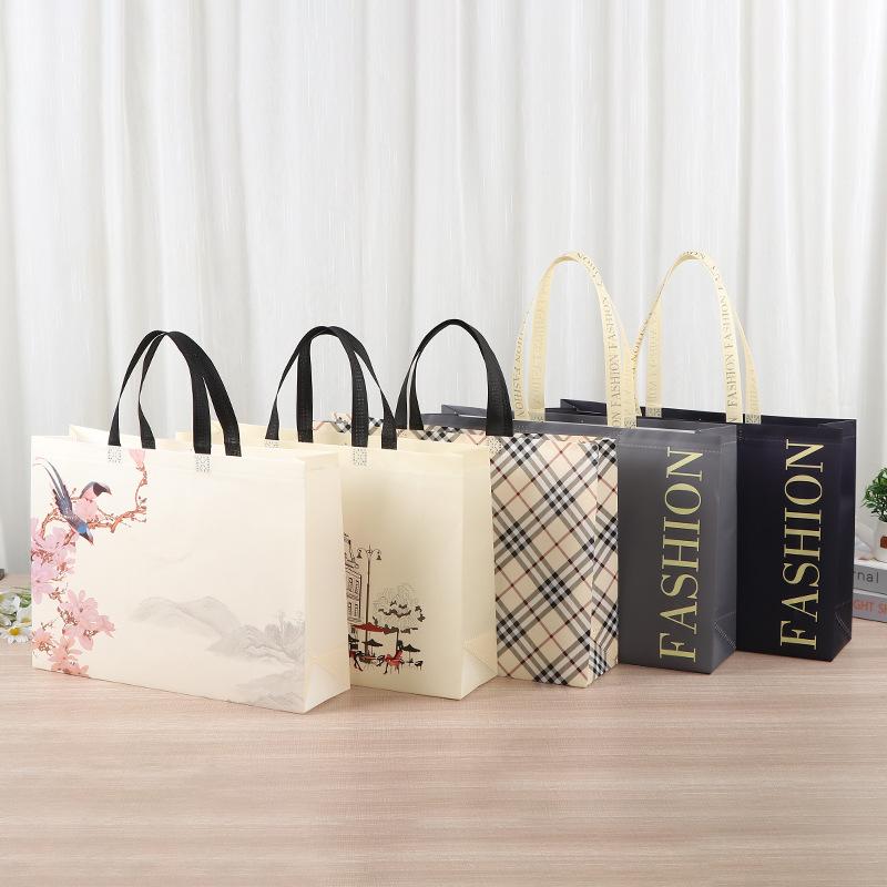Bolso de mano plegable de tela no tejida con múltiples especificaciones, tipo souvenir, para compras, con logotipo impreso a color.