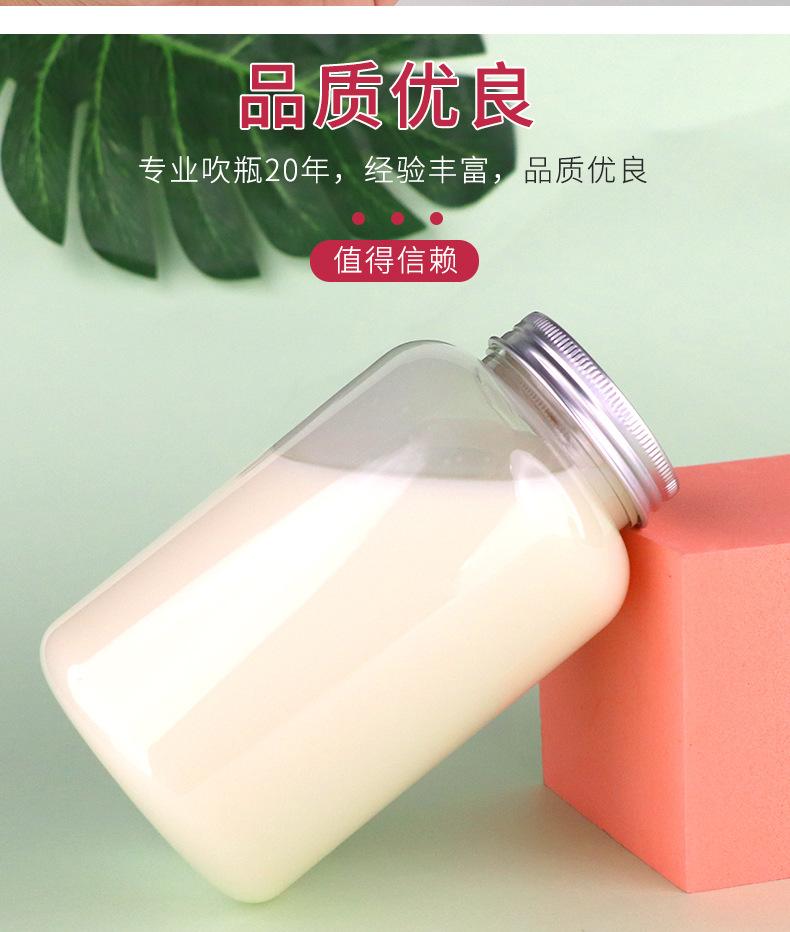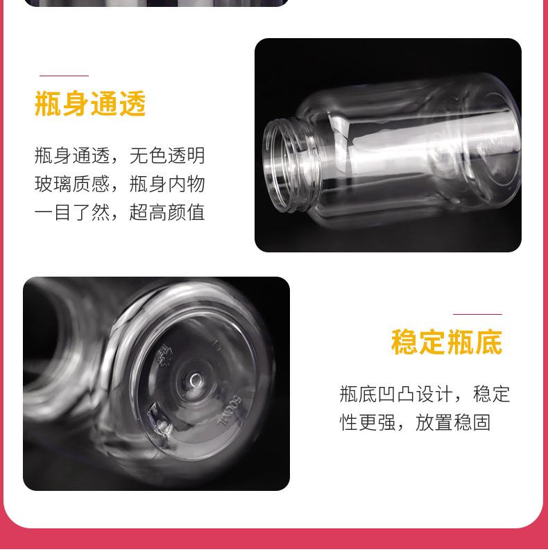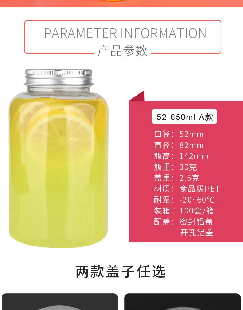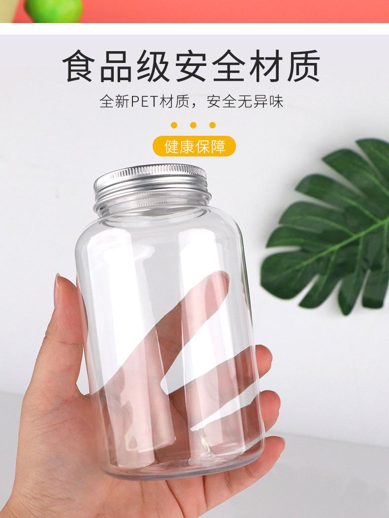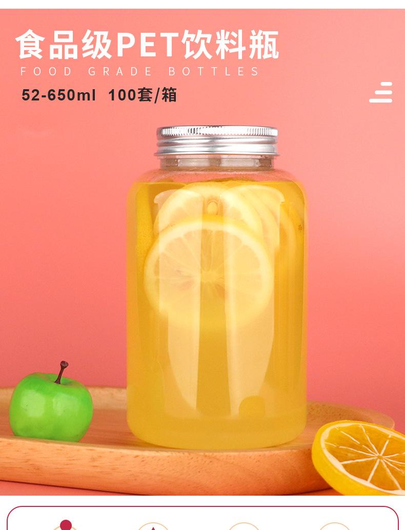Botella de plástico PET transparente Spot 650ml botella de té de leche gorda celebridad de internet boca ancha botella para bebida de jugo embalaje de frutos secos