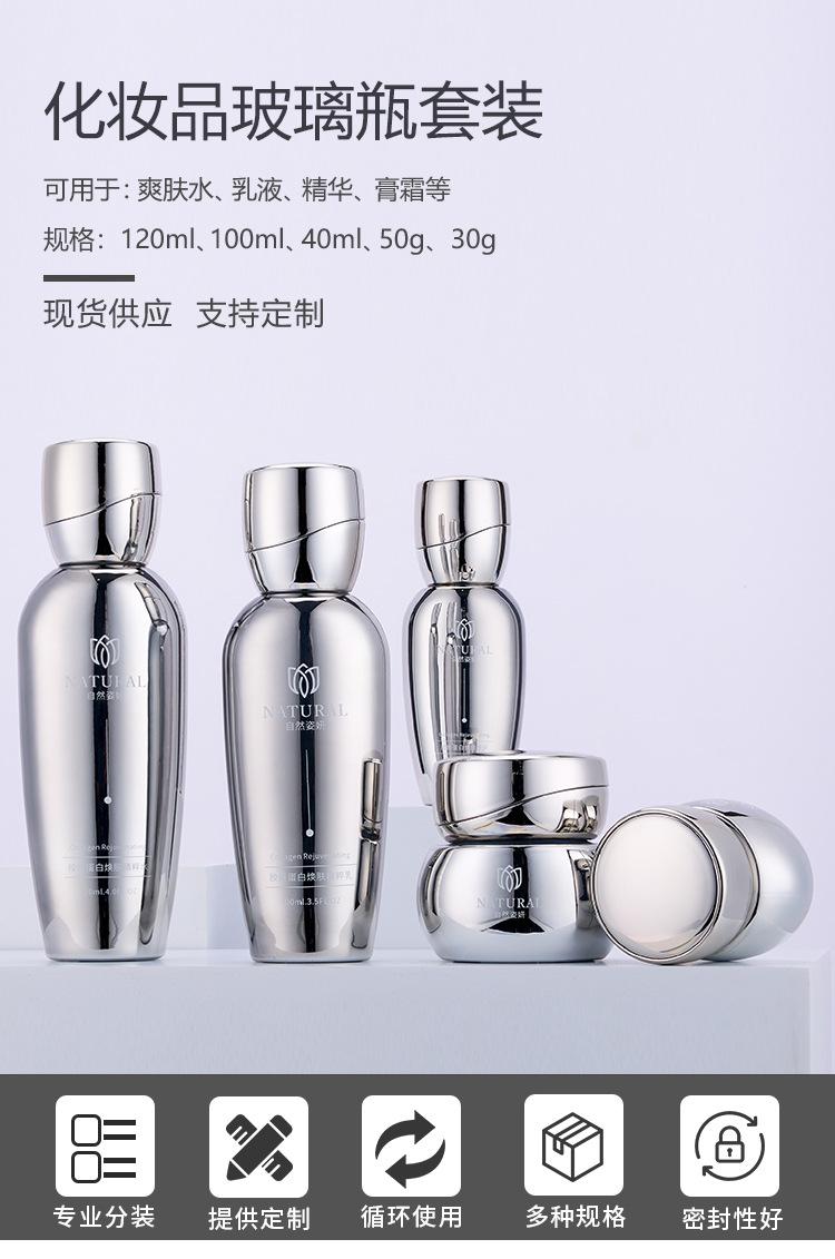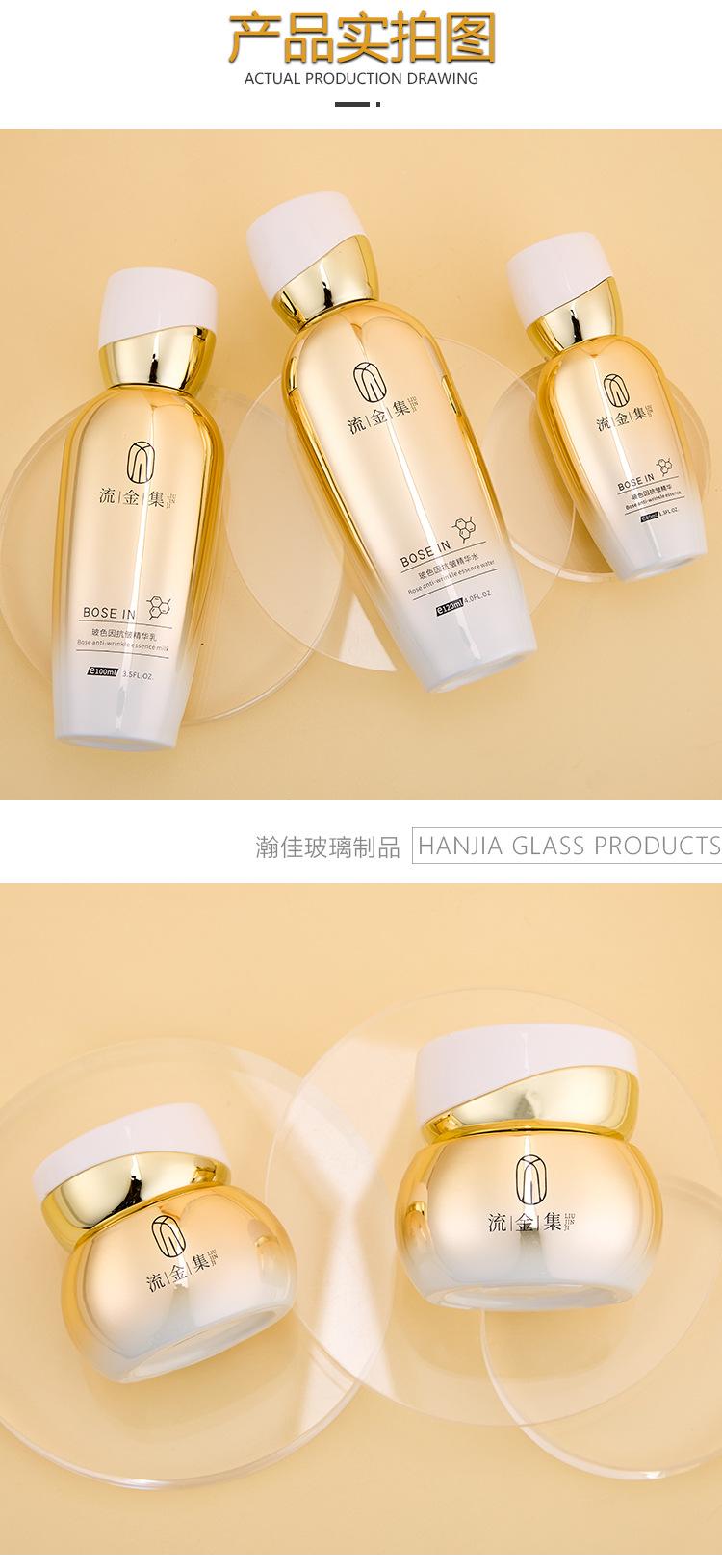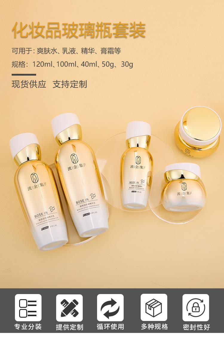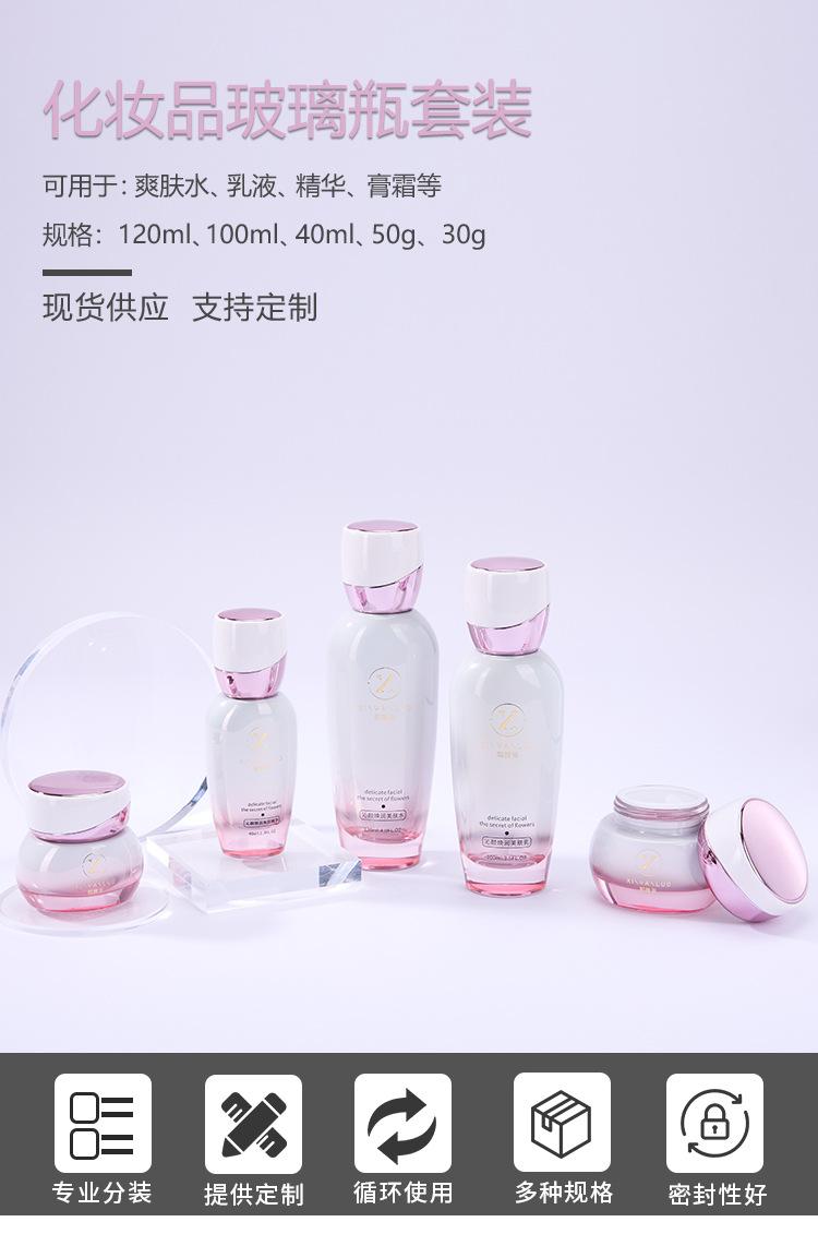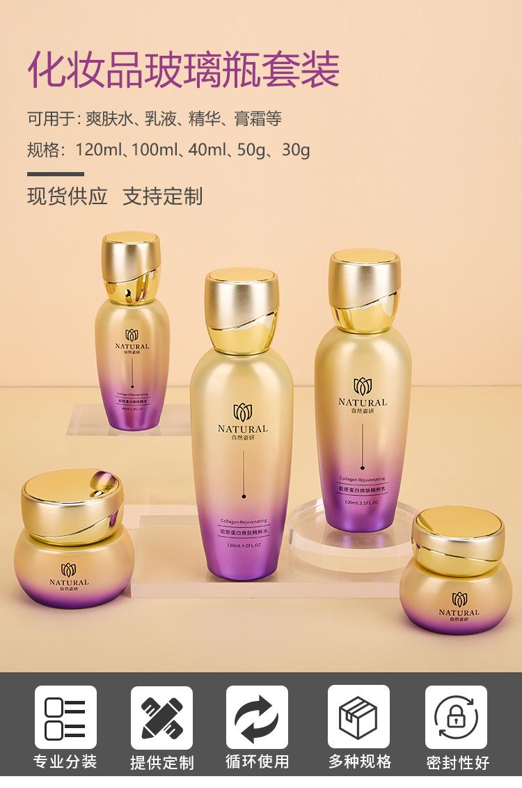 Set de Botellas de Vidrio para Cosméticos de Alta Gama Tónico Esencia Loción Botella de Aceite Esencial Botella de Crema Cosmética Venta al por Mayor
