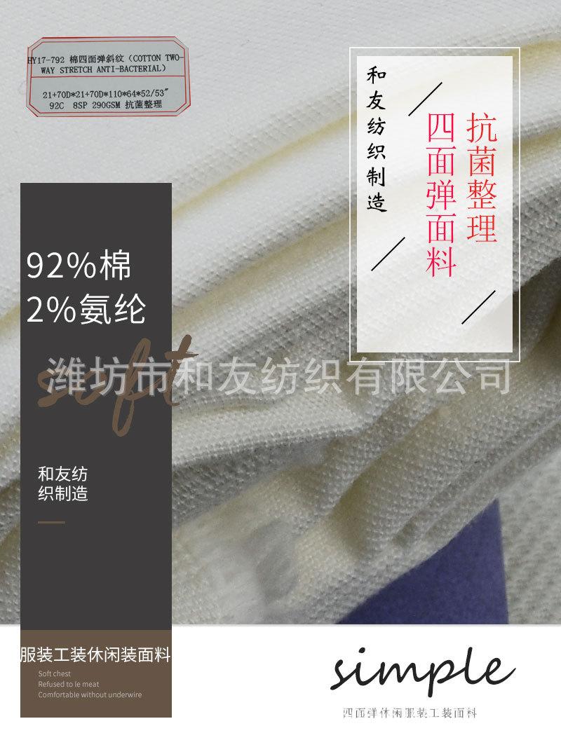Nuestra empresa ha lanzado un nuevo producto---algodón puro con acabado antibacteriano, resistente al moho y desodorante, sarga elástica en cuatro direcciones, tela para uniforme de ropa de trabajo de peto
