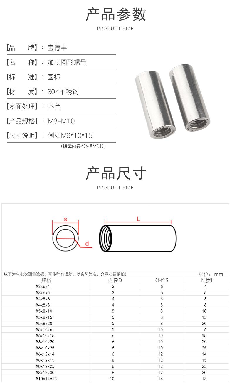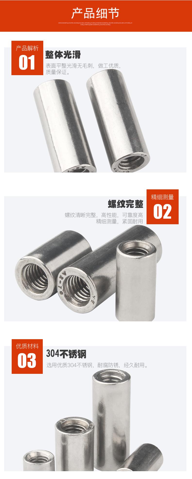 Tuerca Redonda de Acero Inoxidable 304 Tuerca de Conexión de Columna Redonda Tornillo Varilla de Conexión M3M4M5M6M8/M10 Precisión