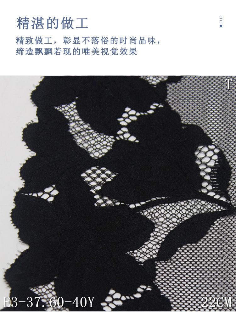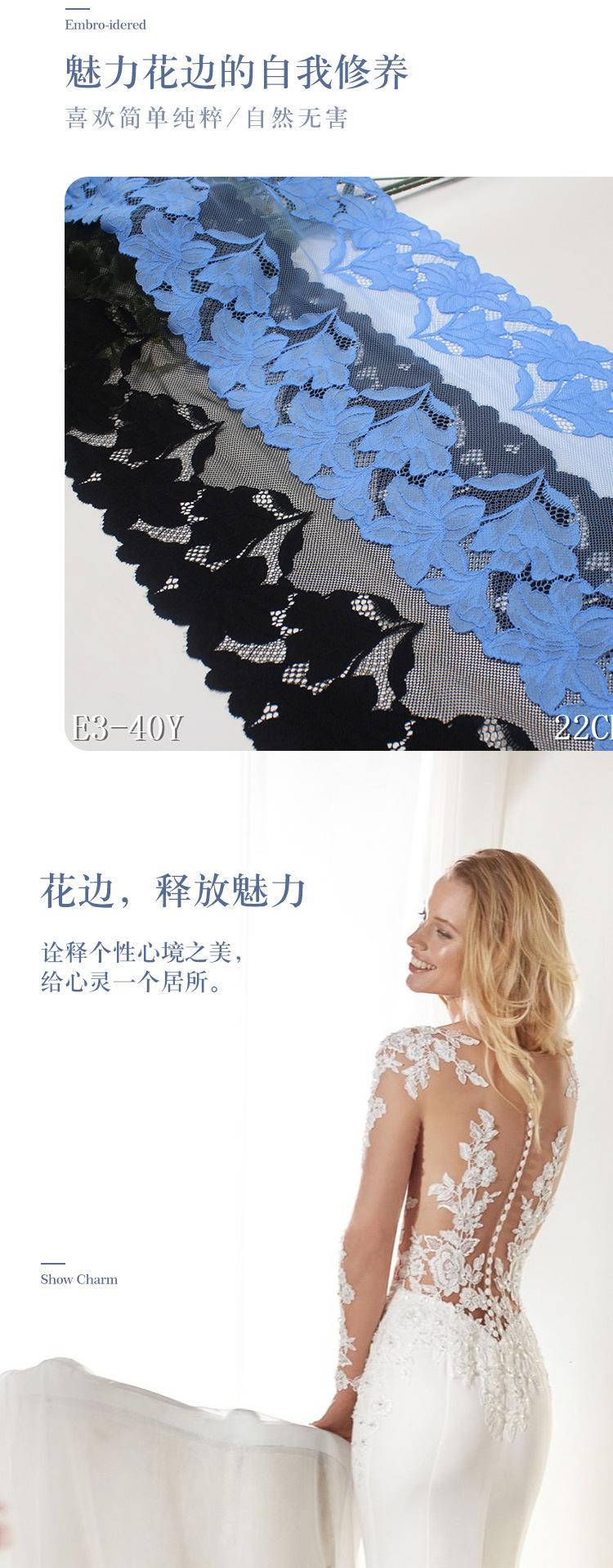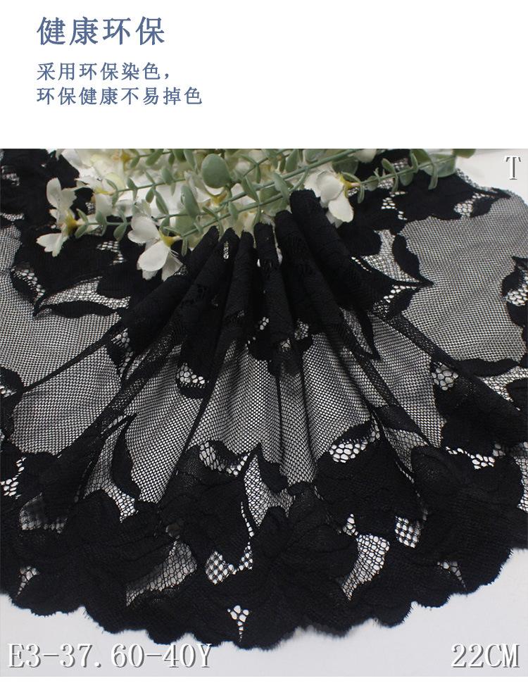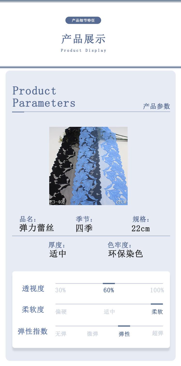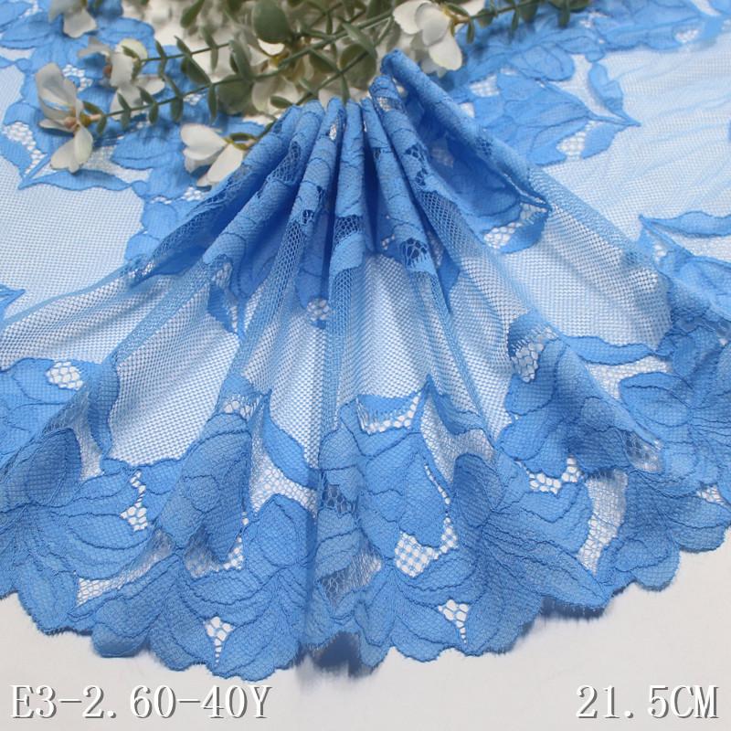 Encaje Elástico Ligero Tanglong Negro y Azul con Diseño de Flor de Lirio Hueca por Ambos Lados, Adorno de Encaje Decorativo para Lencería de 21 cm