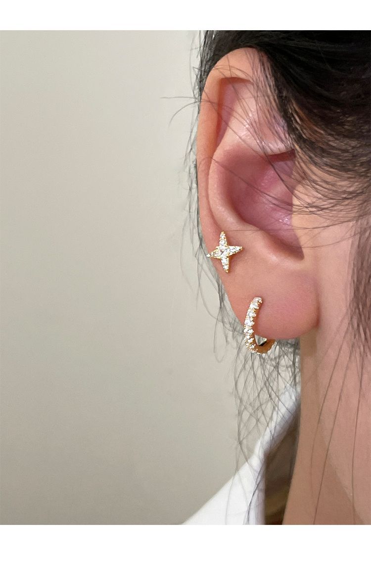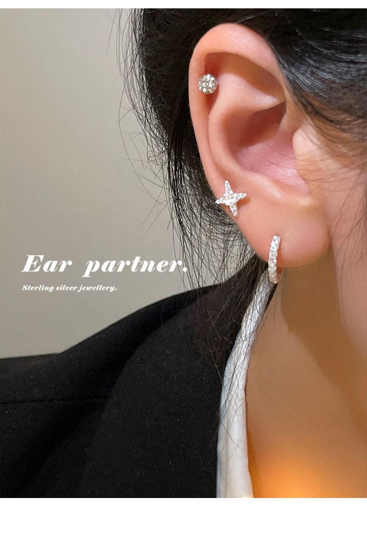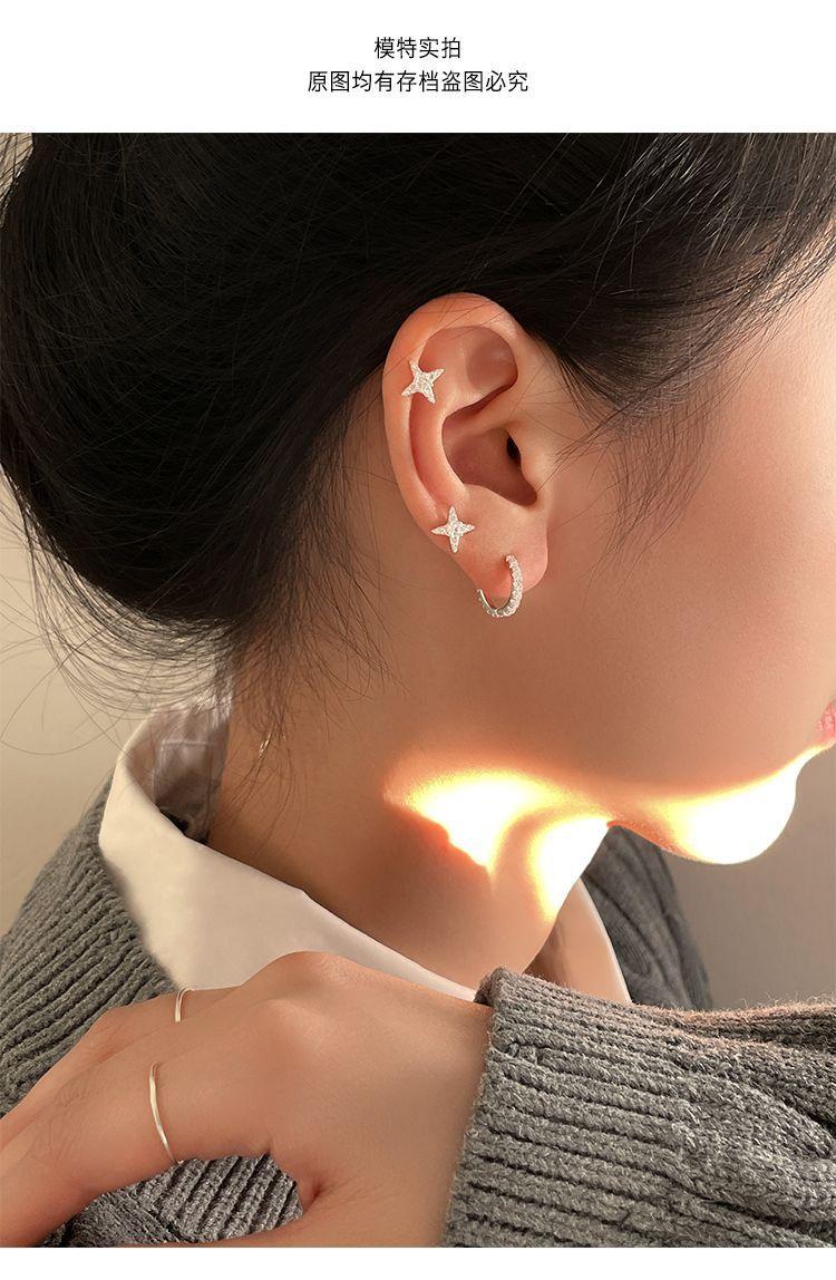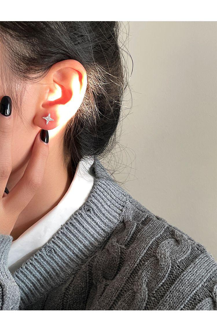 Pendientes para mujer, diseño de nicho bañado en plata, pendientes de circonita estrellada con forma de hueso de oreja de alta calidad, pendientes de otoño e invierno para mujer.