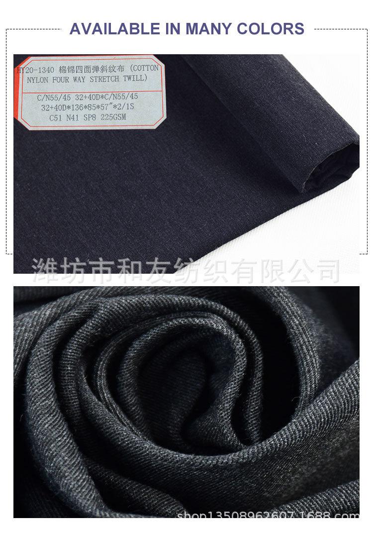 Nuestros productos incluyen sarga elástica en cuatro direcciones, telas para ropa de trabajo elásticas de doble cara, telas estampadas, sarga de algodón puro y telas de lino, algodón elástico en cuatro direcciones, etc. Invitamos a amigos de todos los ámbitos de la vida a preguntar.