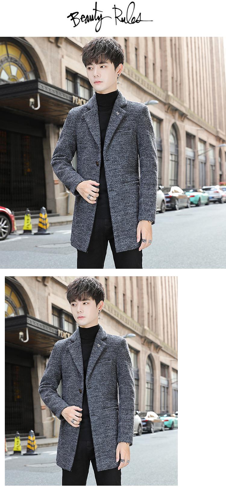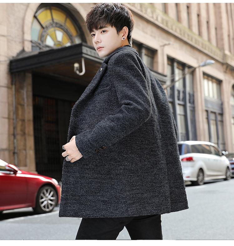 Moda otoño e invierno abrigo largo de lana por encima de la rodilla para hombre cortavientos abrigo de lana estudiante estilo coreano casual suelto abrigo moderno