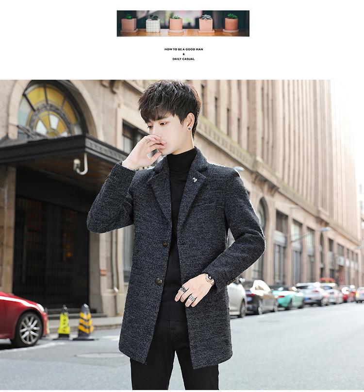 Abrigo de lana nuevo de otoño e invierno para hombre, abrigo de lana de estilo coreano moderno y casual, acolchado y engrosado, corte ajustado, cortavientos de largo medio