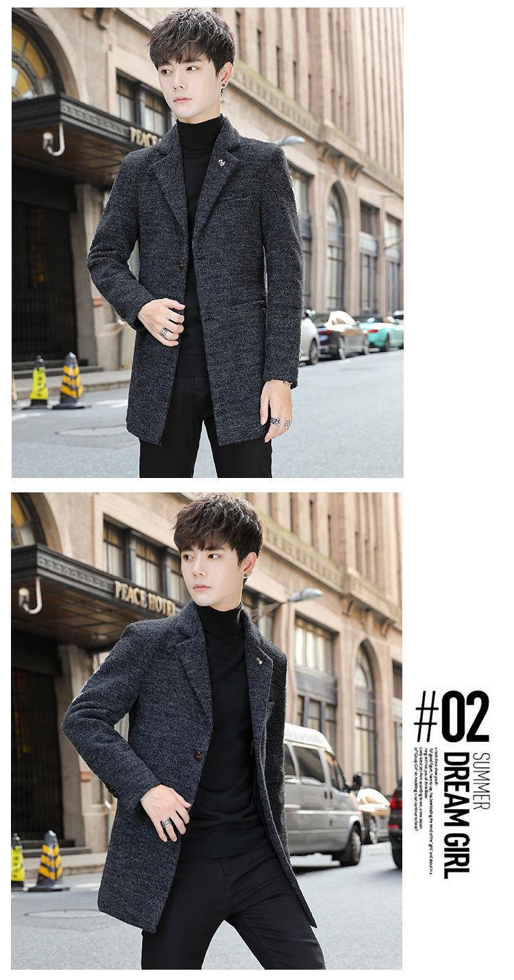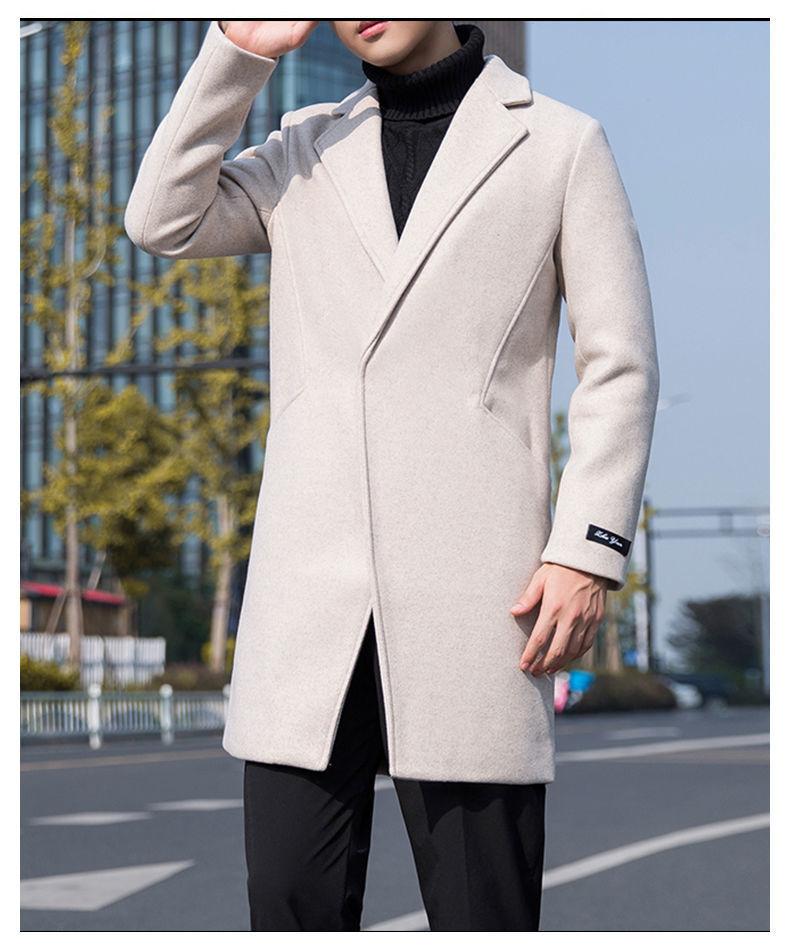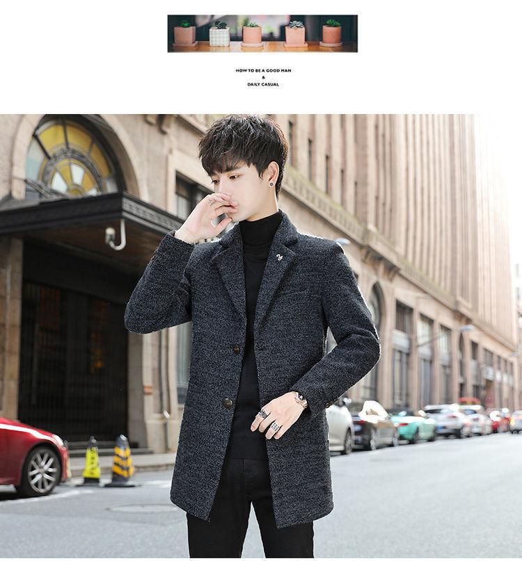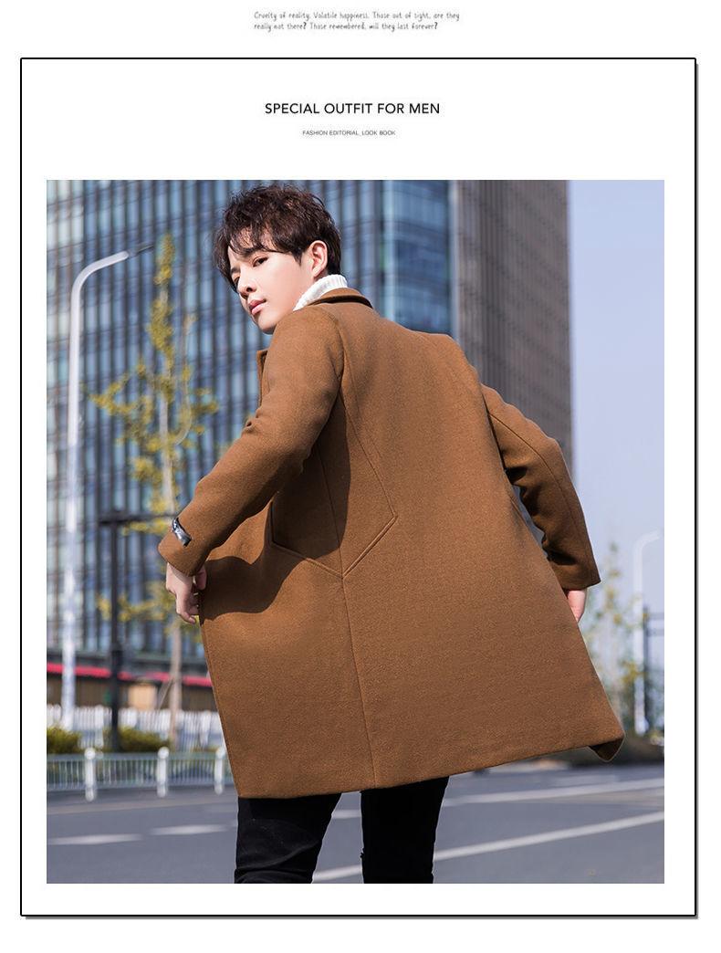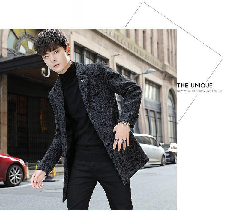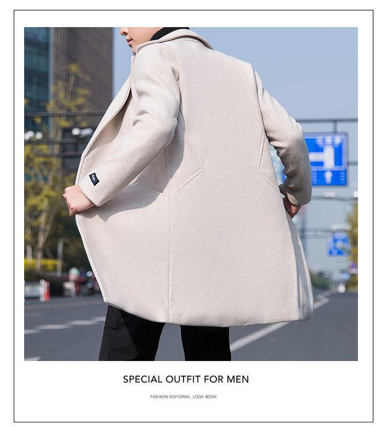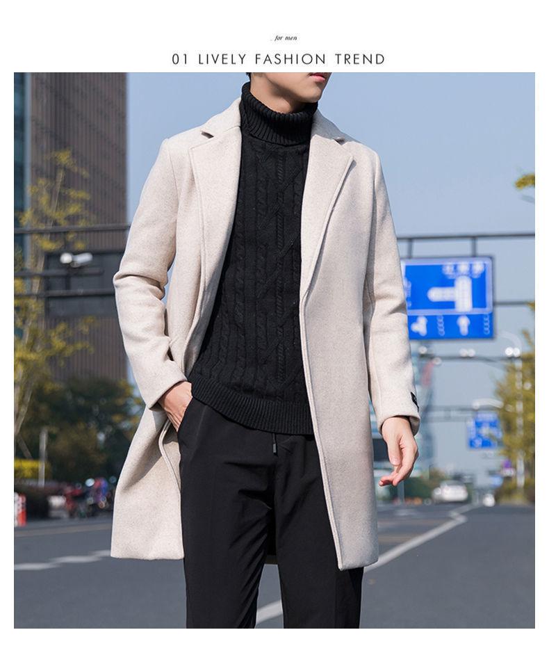 Moda otoño e invierno abrigo largo de lana por encima de la rodilla para hombre cortavientos abrigo de lana estudiante estilo coreano casual suelto abrigo moderno