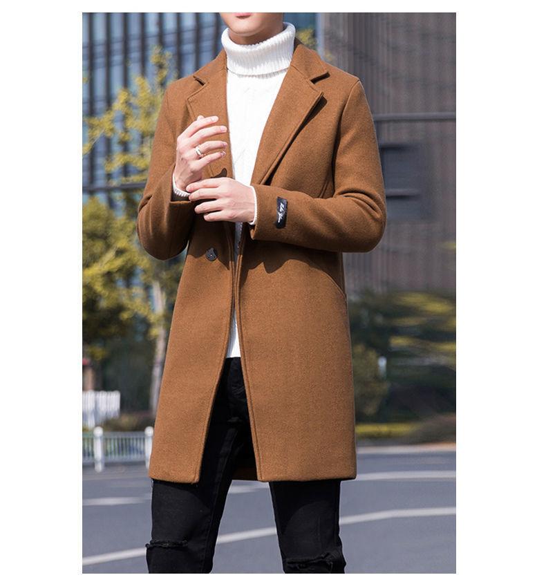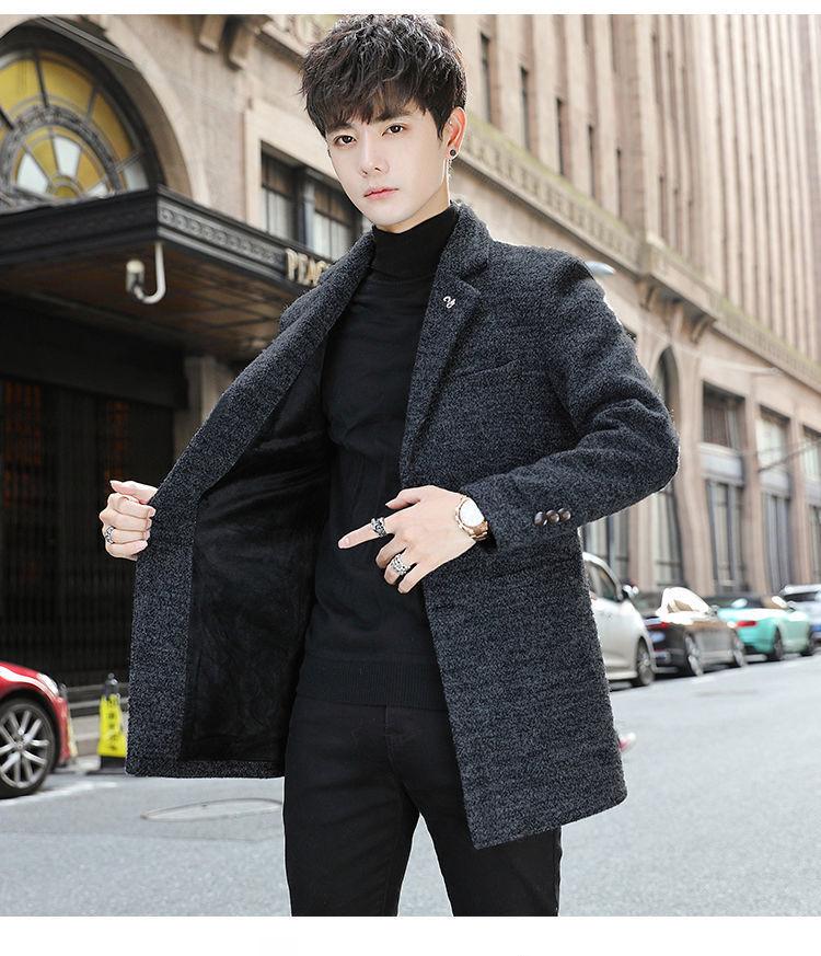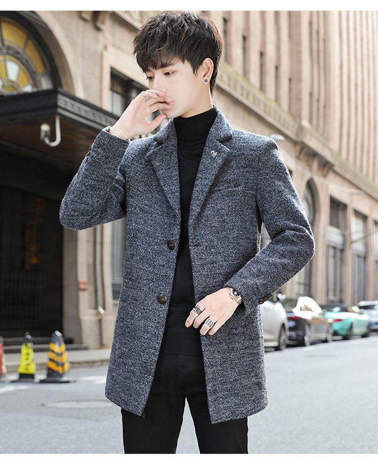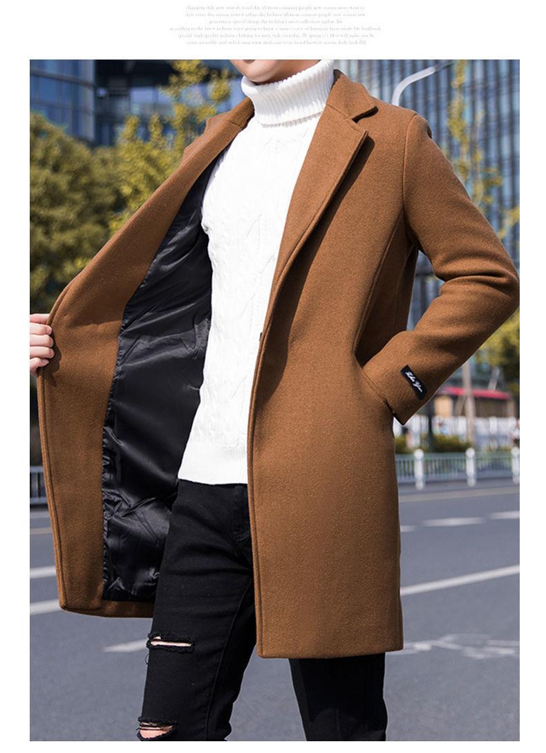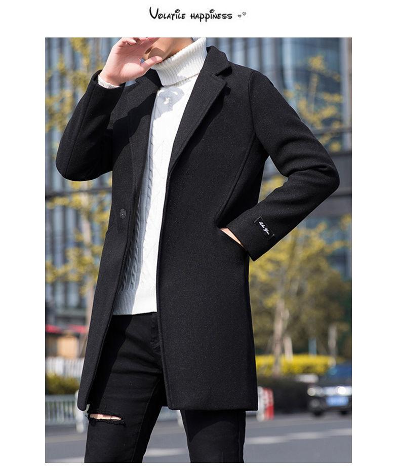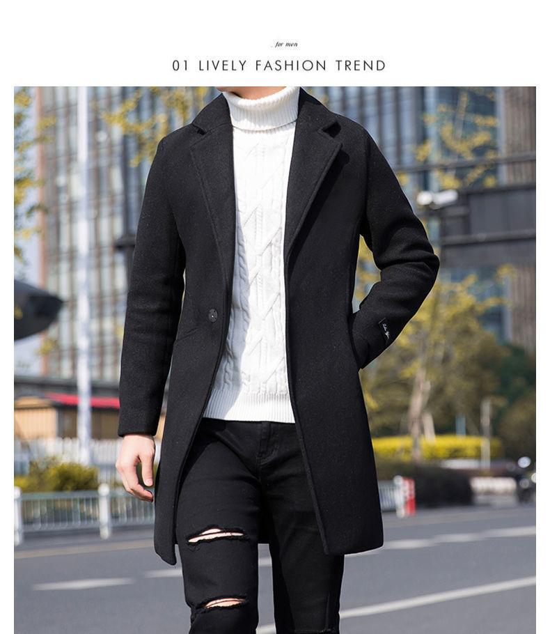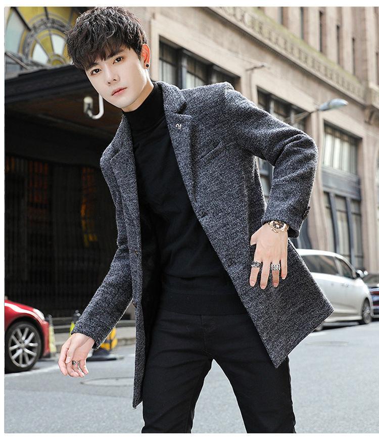 Moda otoño e invierno abrigo largo de lana por encima de la rodilla para hombre cortavientos abrigo de lana estudiante estilo coreano casual suelto abrigo moderno