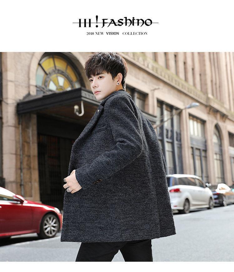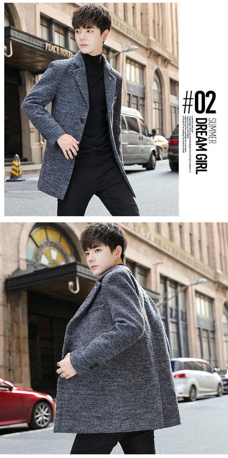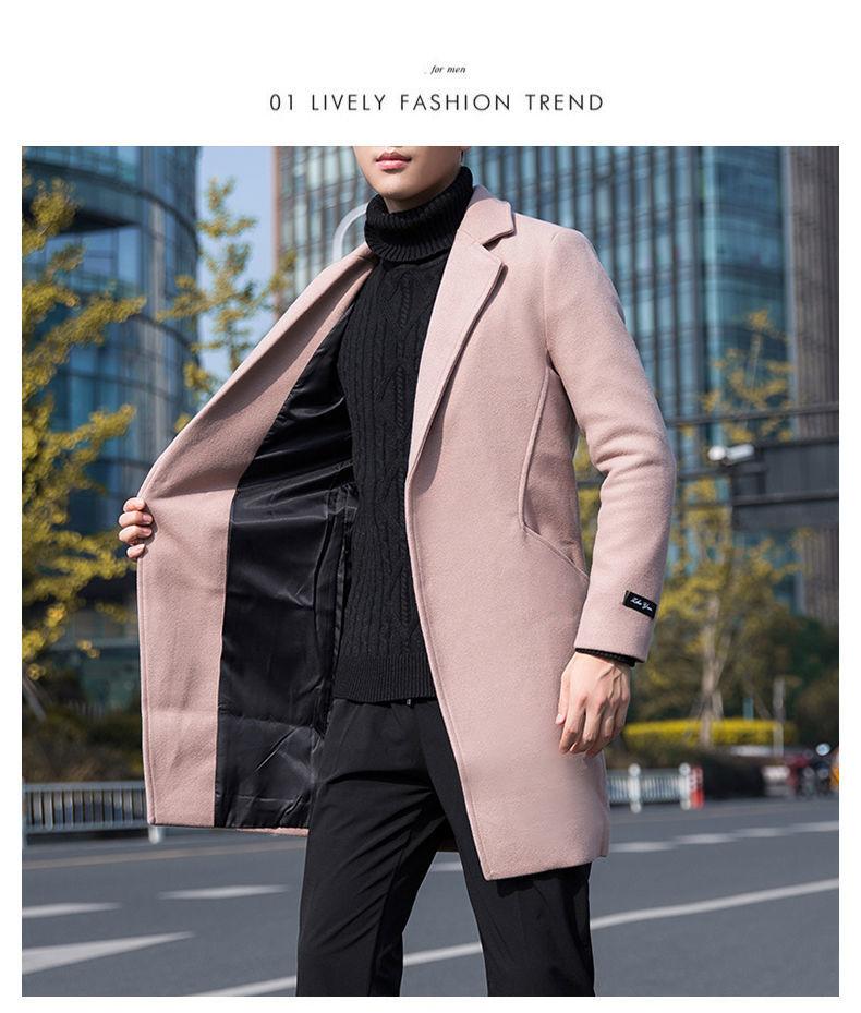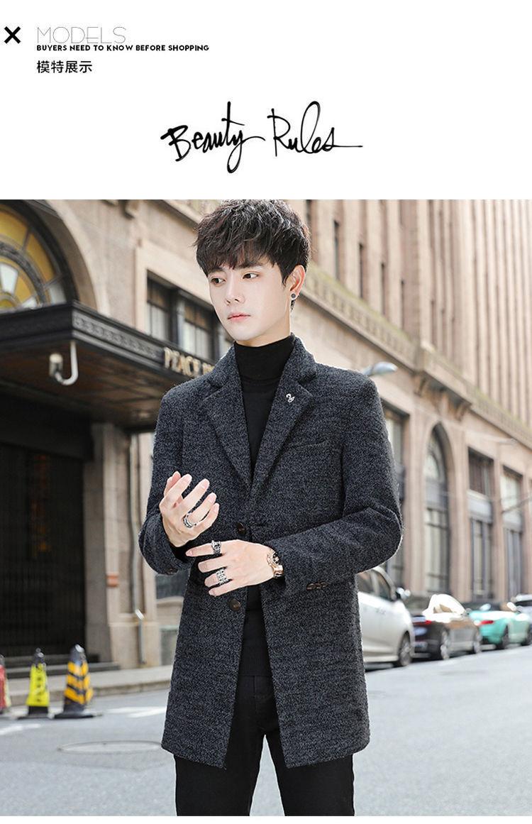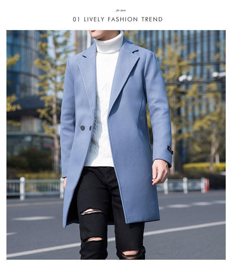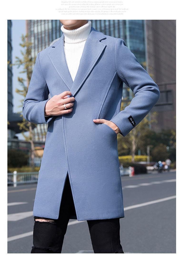 Moda otoño e invierno abrigo largo de lana por encima de la rodilla para hombre cortavientos abrigo de lana estudiante estilo coreano casual suelto abrigo moderno