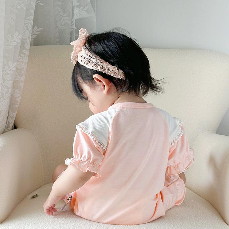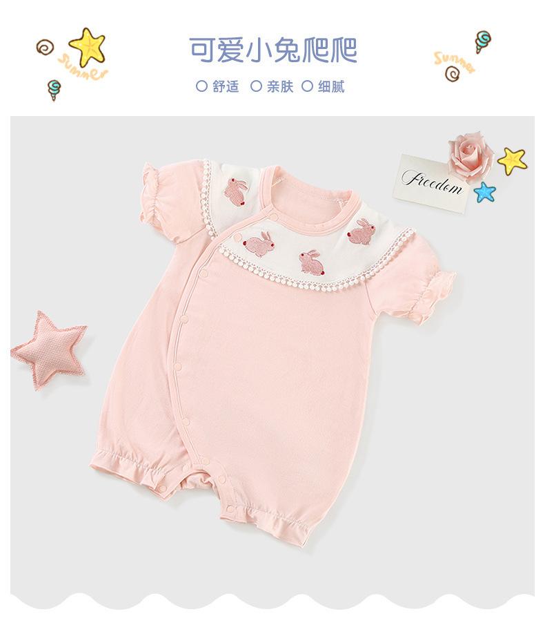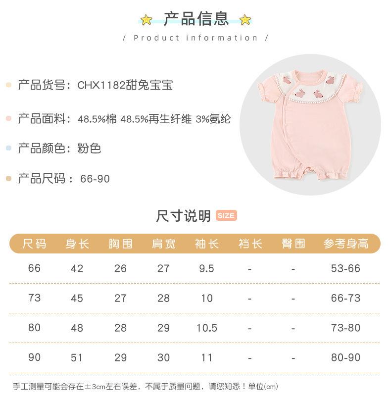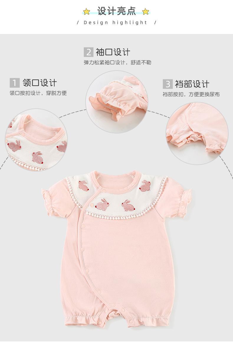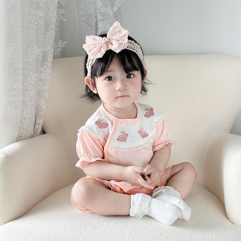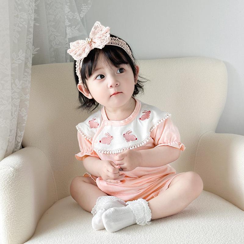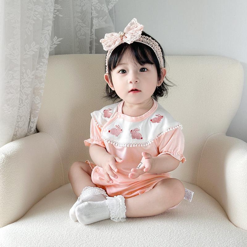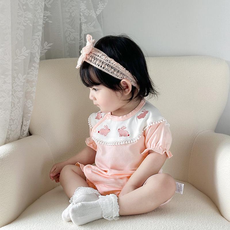 Mameluco de Verano de Manga Corta para Bebé Niña Dulce Conejo Cárdigan Inclinado Ropa Ropa para Recién Nacido Ropa de Bebé