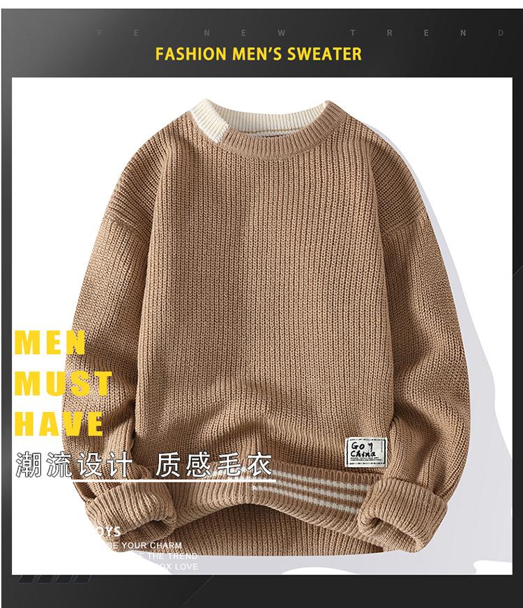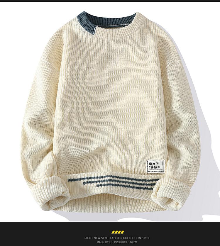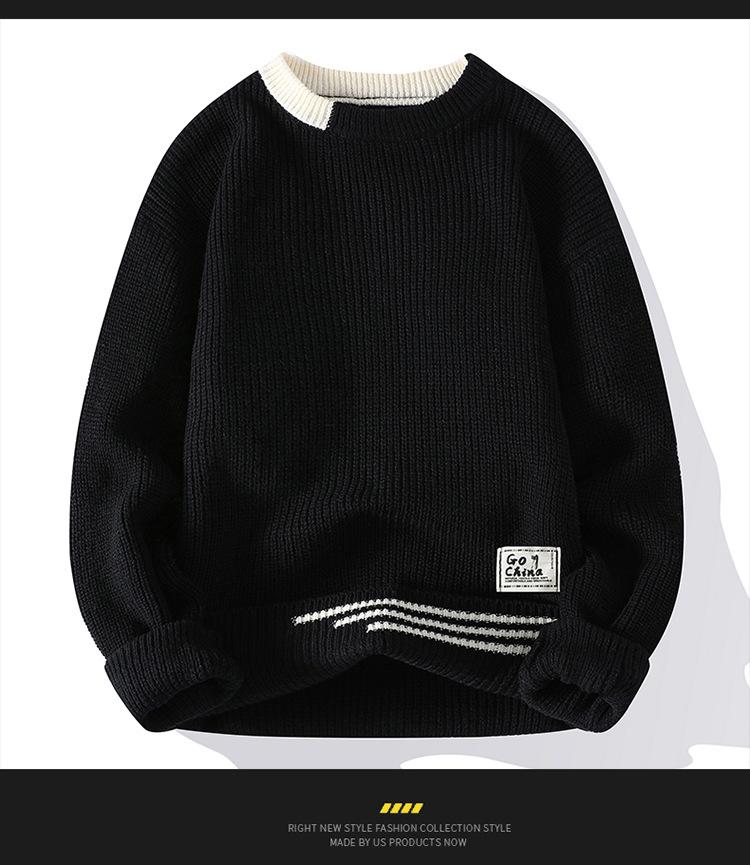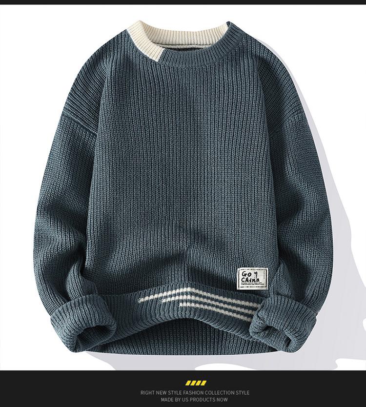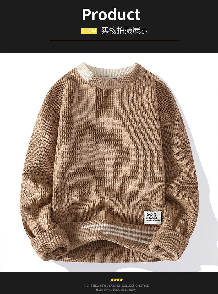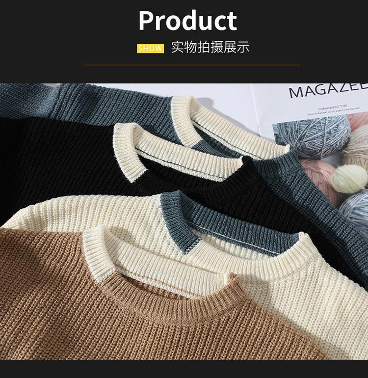 Compra Invierno 2025 Nuevo Suéter de Punto para Hombre de Cuello Redondo con Bloque de Color Estilo Coreano Moda Juvenil Casual Camiseta Básica al por mayor en Joom.pro